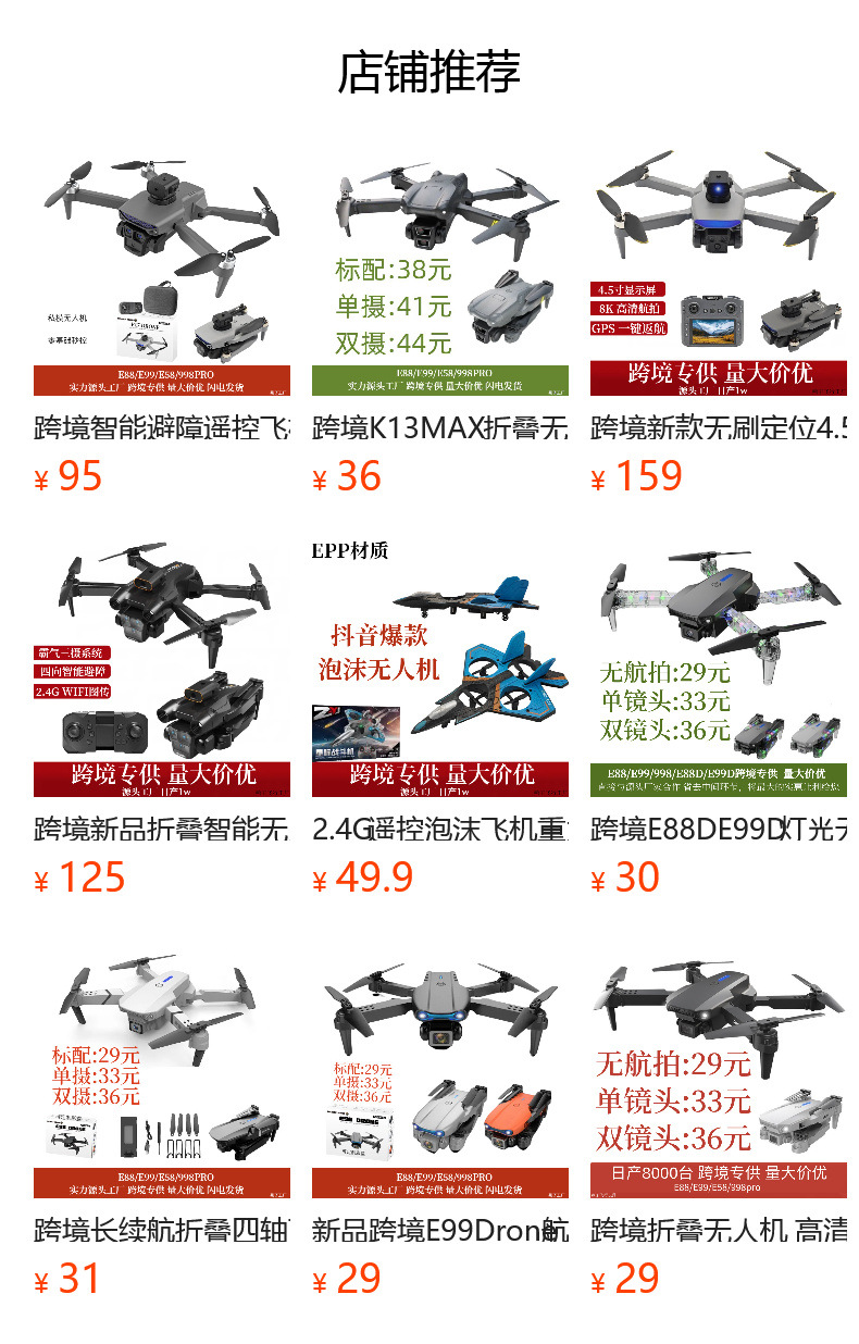 신제품 국경 간 E99Drone 항공 사진 드론 초등학생 장난감 쿼드 콥터 대외 무역 원격 제어 항공기스토어 가기