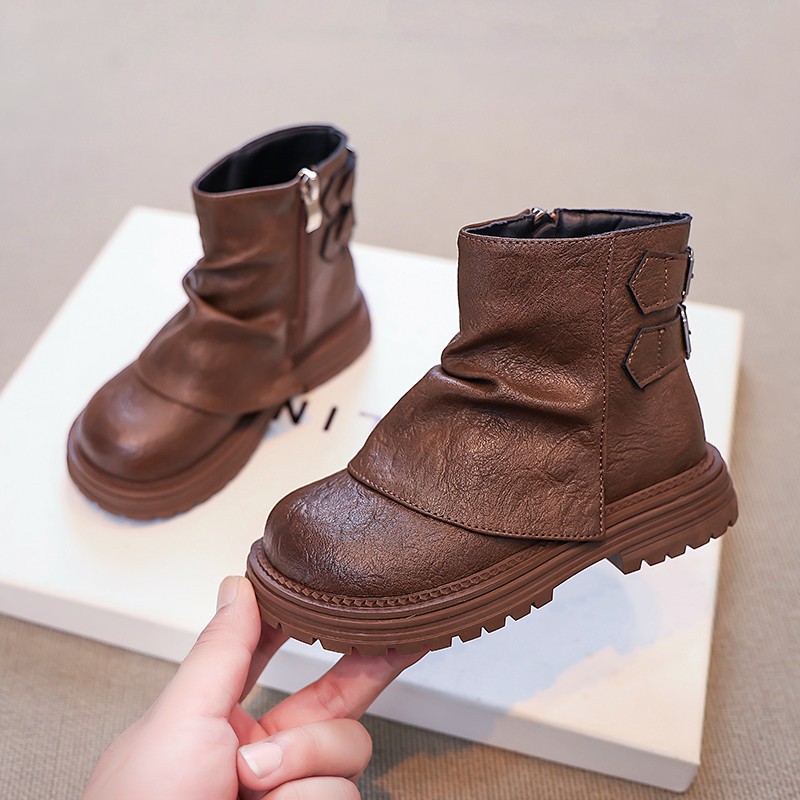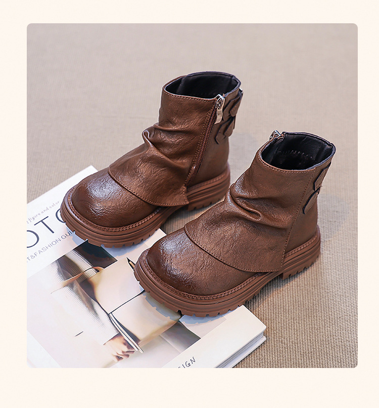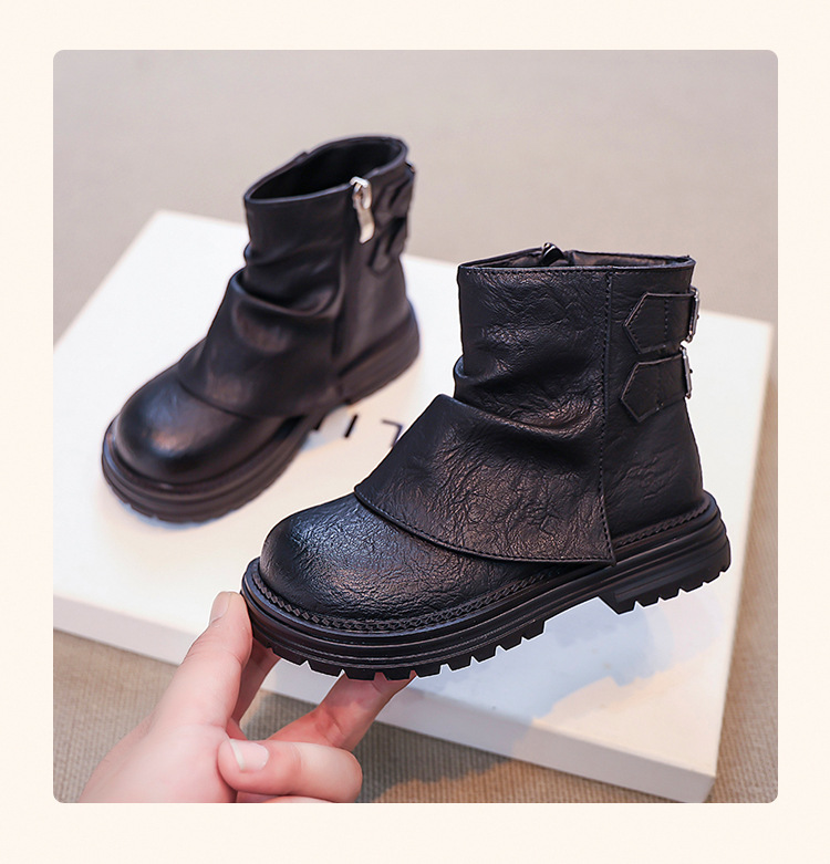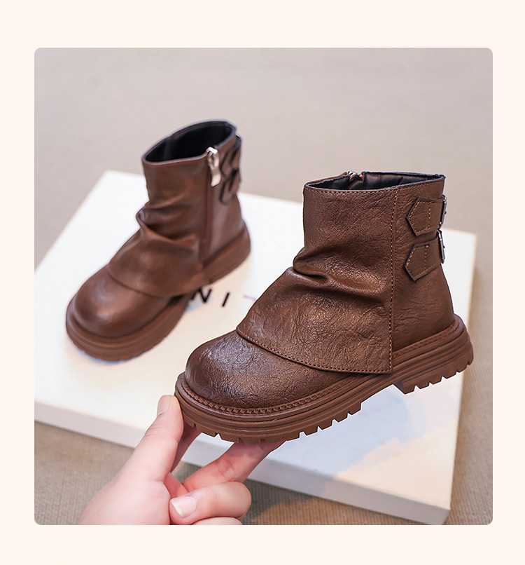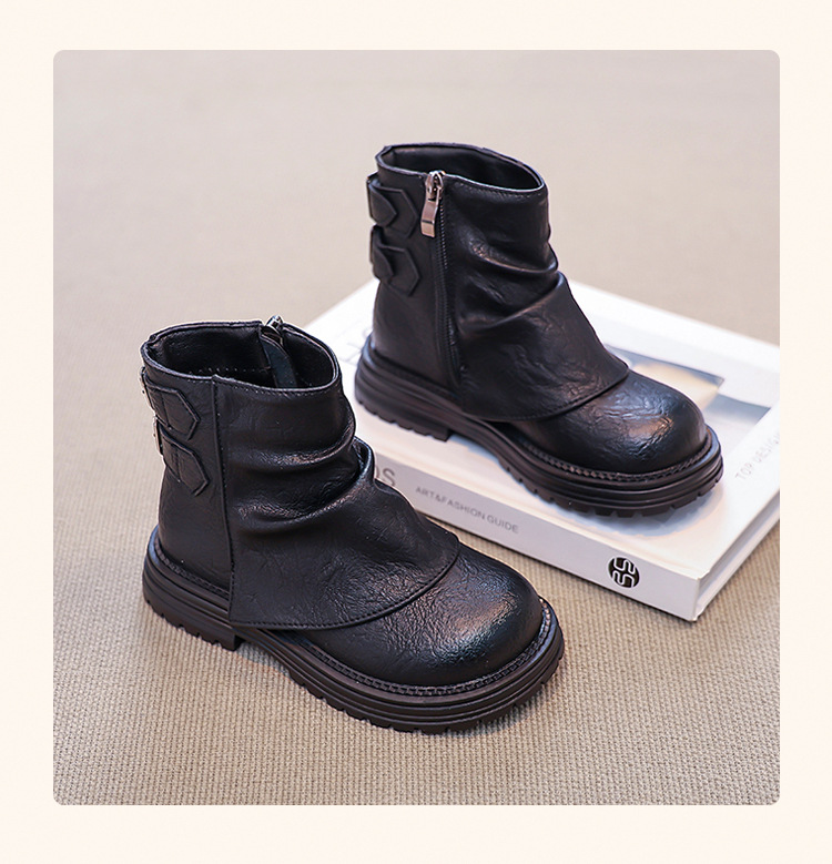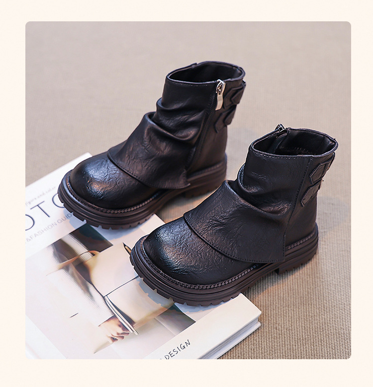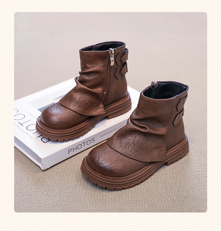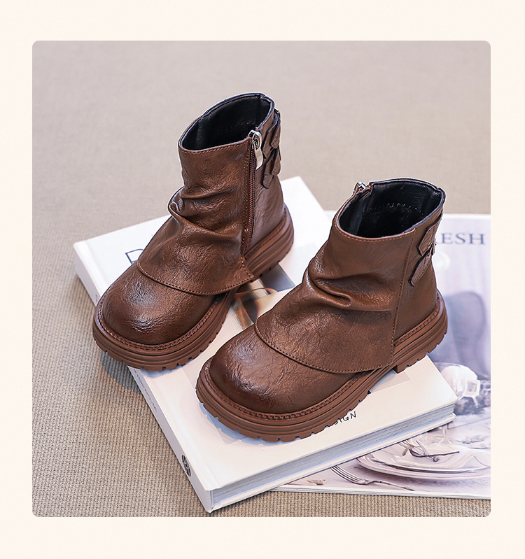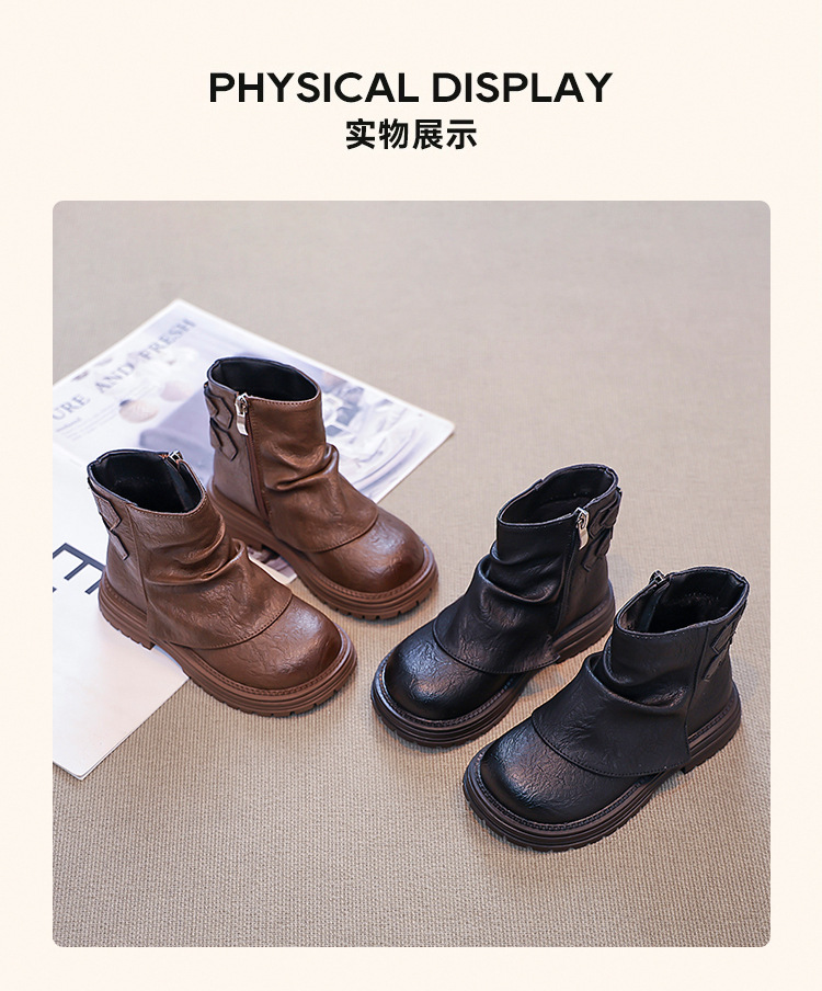 2024 새로운 가을 한국 스타일 아동 부츠, 심플하고 다재다능한 소녀 공주 부츠, 패셔너블한 가죽 부츠, 트렌디한 싱글 부츠스토어 가기