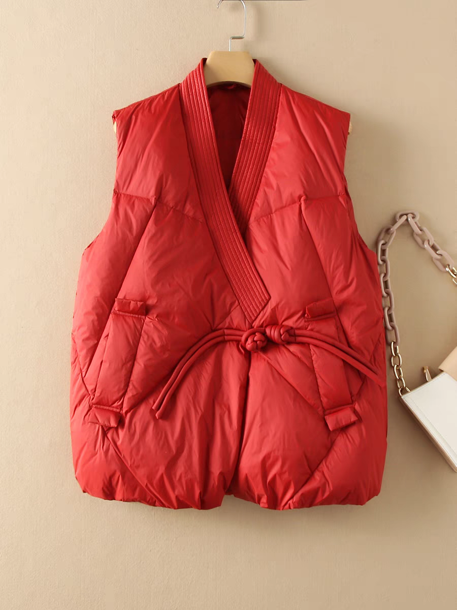 새로운 중국 스타일 버튼 다운 코튼 조끼 여성 겨울 디자인 센스 오버랩 칼라 웨어 슬림 핏 따뜻한 조끼 탑