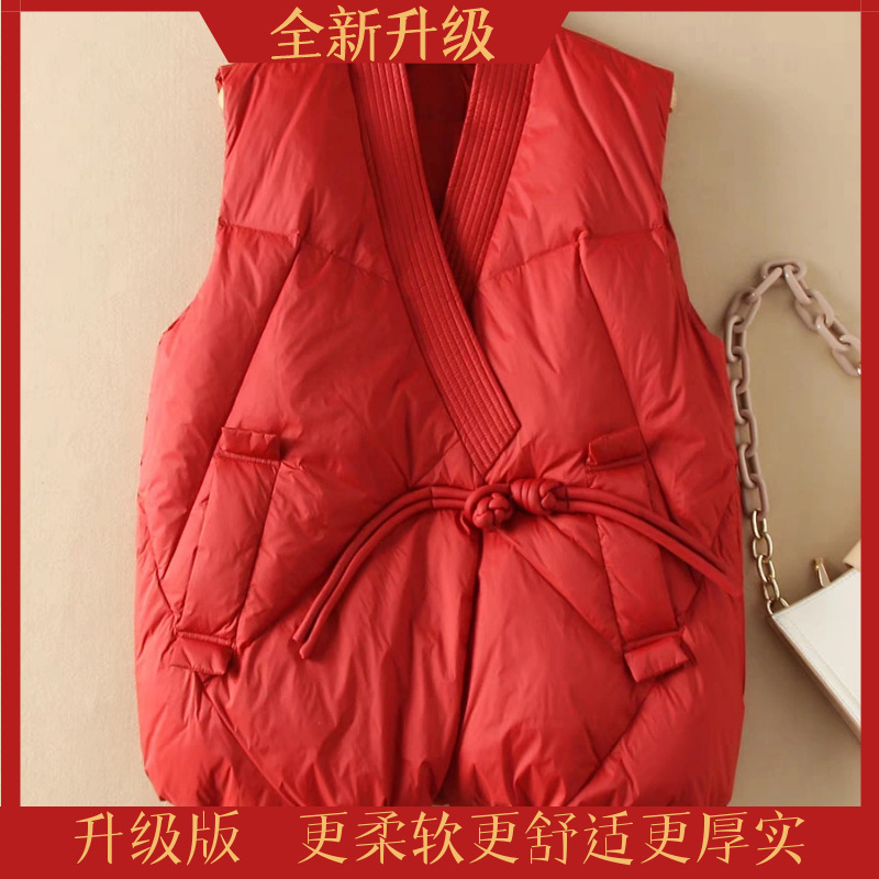 새로운 중국 스타일 버튼 다운 코튼 조끼 여성 겨울 디자인 센스 오버랩 칼라 웨어 슬림 핏 따뜻한 조끼 탑스토어 가기