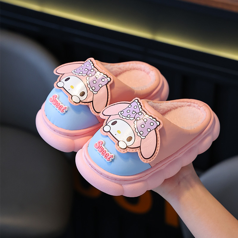 겨울 어린이 방수 면화 슬리퍼 만화 귀여운 플랫 바닥 따뜻한 소녀의 실내 집 바오 터우 면화 슬리퍼