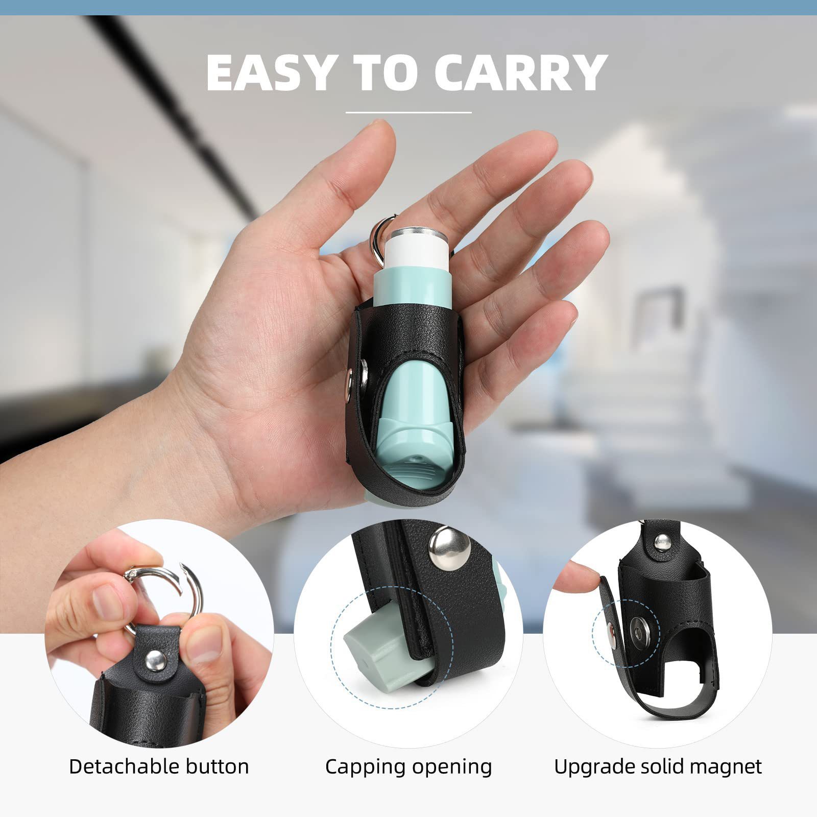 국경 간 재고 PU 피부 기침 및 천식 흡입기 저장 가방 기침 항균 스프레이 병 보관 가죽 케이스 지원 맞춤형스토어 가기