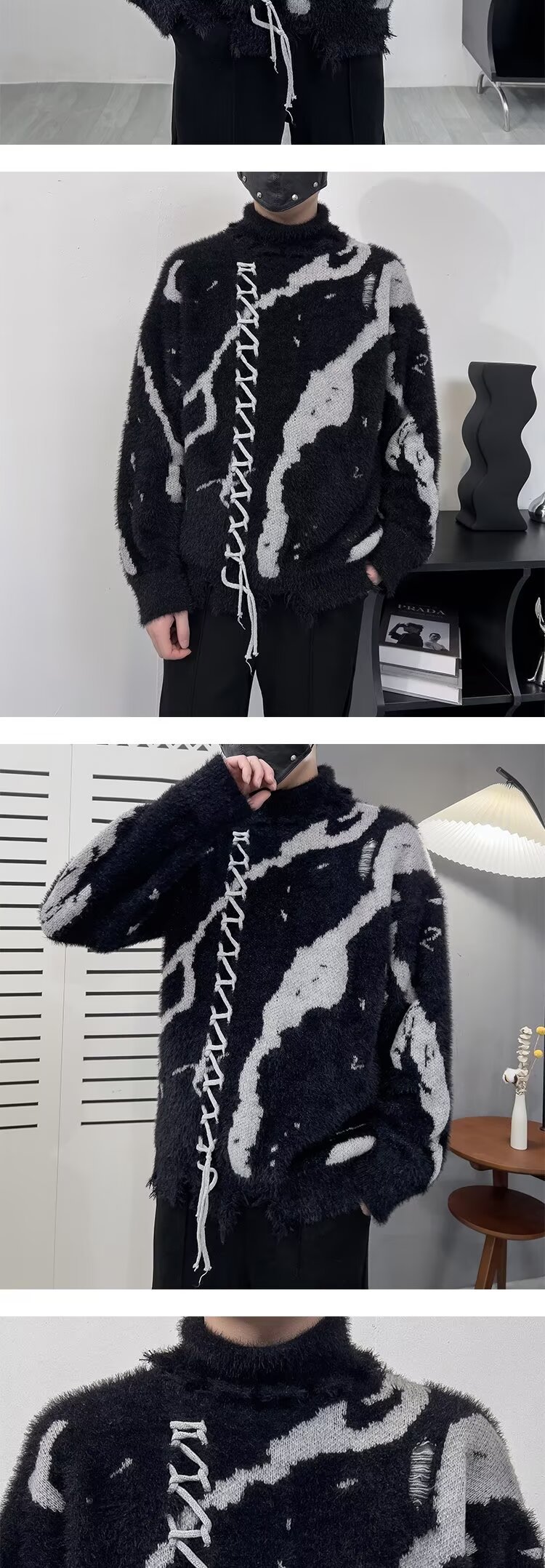 미국 레트로 가시 구멍 디자인 센스 트렌디 한 카디건 트렌디 하이 센스 게으른 니트 스웨터 재킷 가을 트렌디스토어 가기