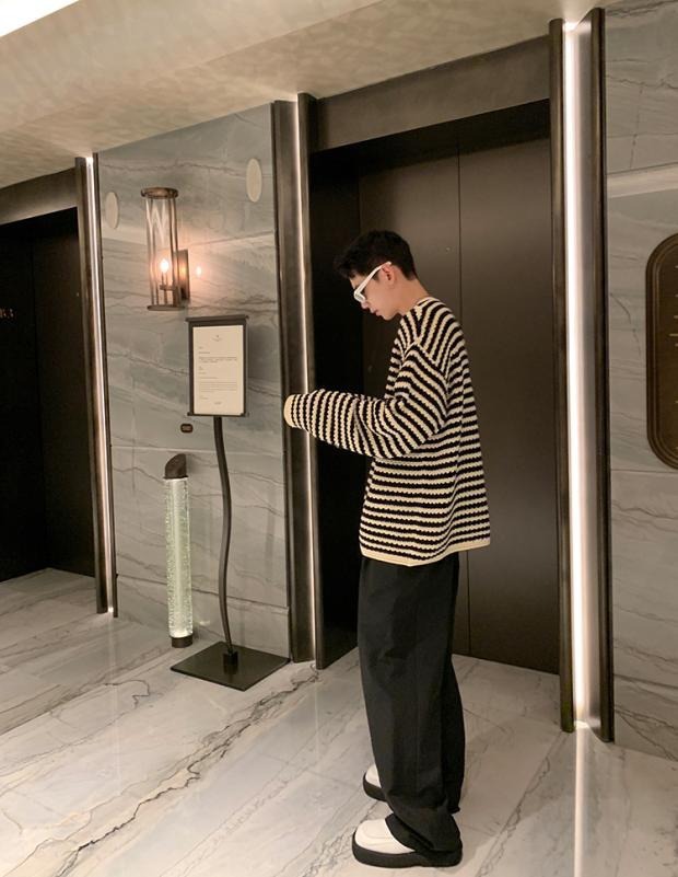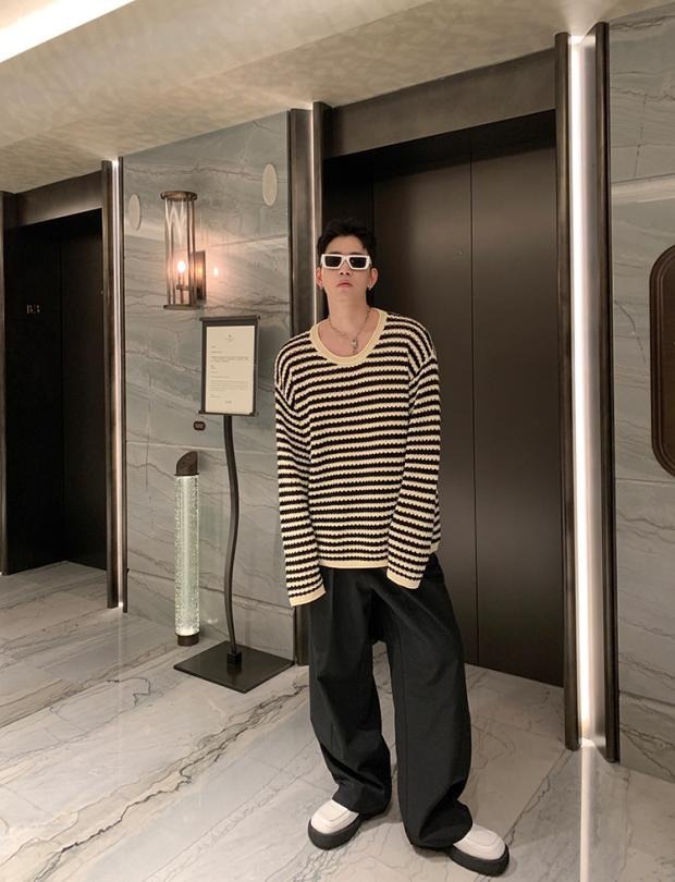 가을 빈티지 크로 셰 뜨개질 스트라이프 빈 스웨터 긴팔 남성 디자인 센스 게으른 스타일 캐주얼베이스 셔츠 탑스토어 가기