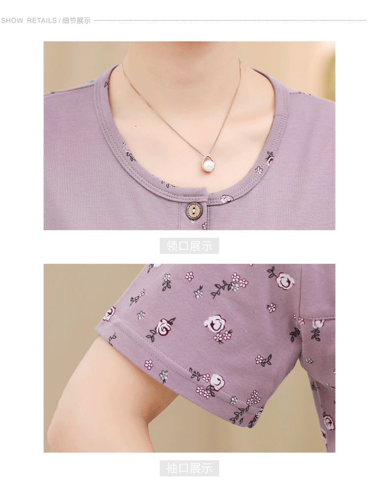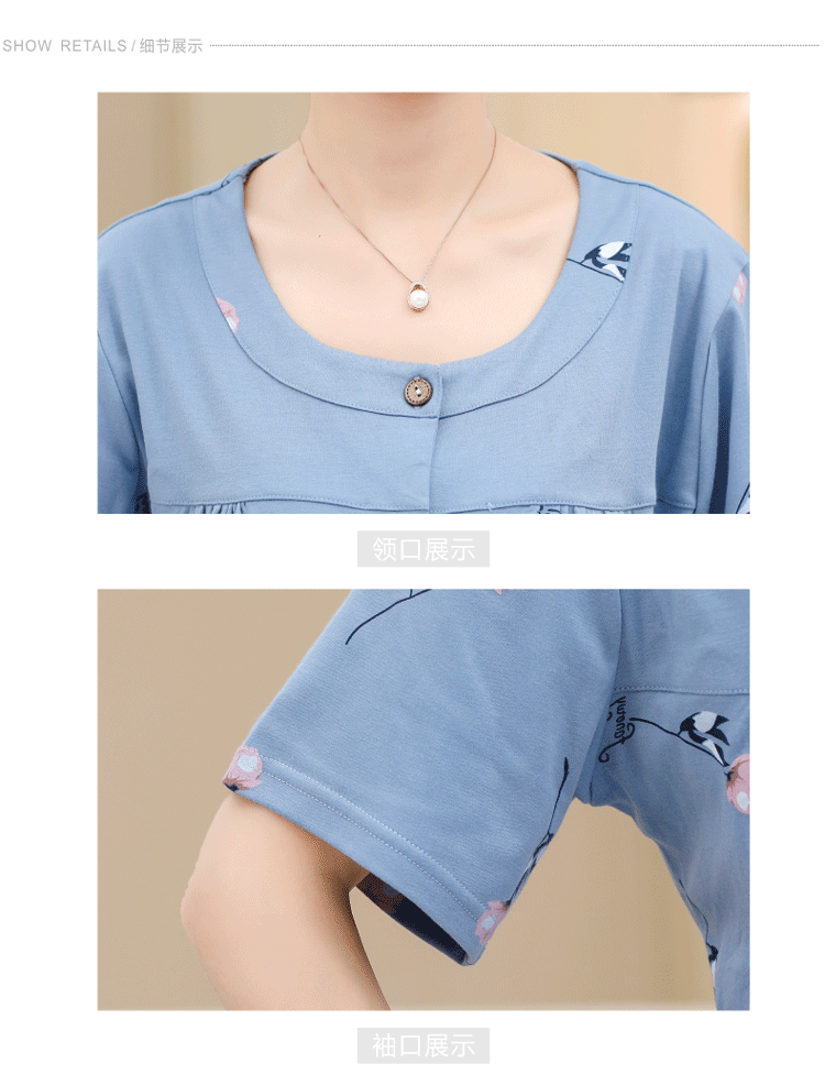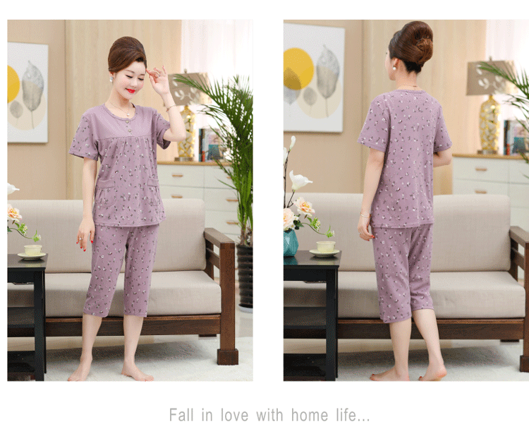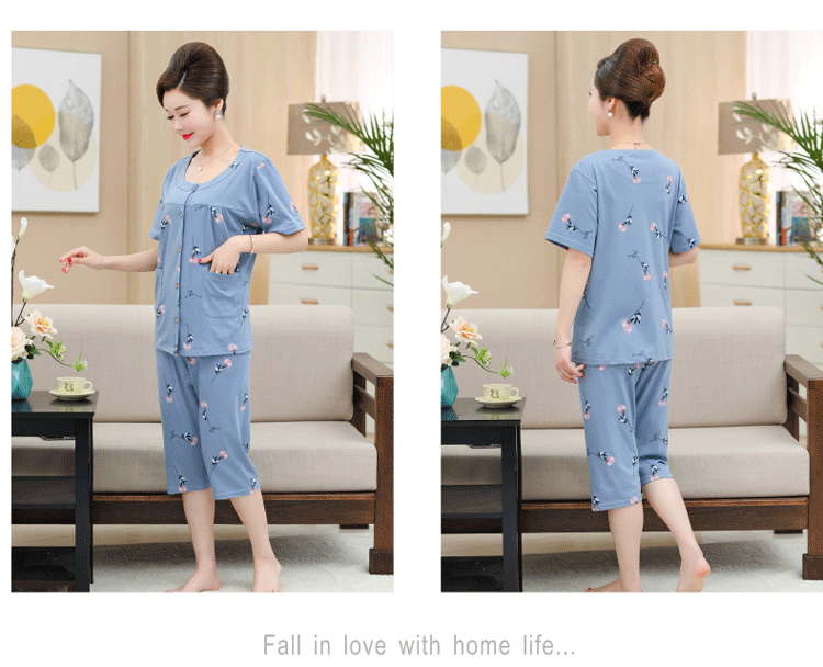 중년 잠옷 여성 여름 순면 엄마 카프리 바지 홈 옷 중년 플러스 사이즈 반팔 반바지 커버 구름스토어 가기