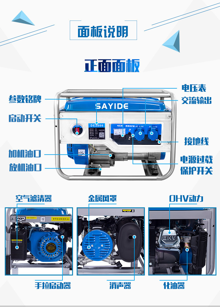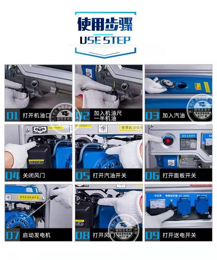 • 8000w 전기 시동 + 연소 가솔린 + 이중 전압