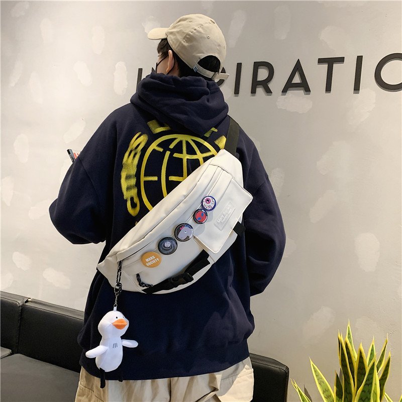 Instagram 인기 브랜드 크로스 바디 백 남성 캐주얼 일본 스타일 작은 배낭 여성 가슴 가방 크로스 바디 백 유행 학생 스포츠 허리 구름