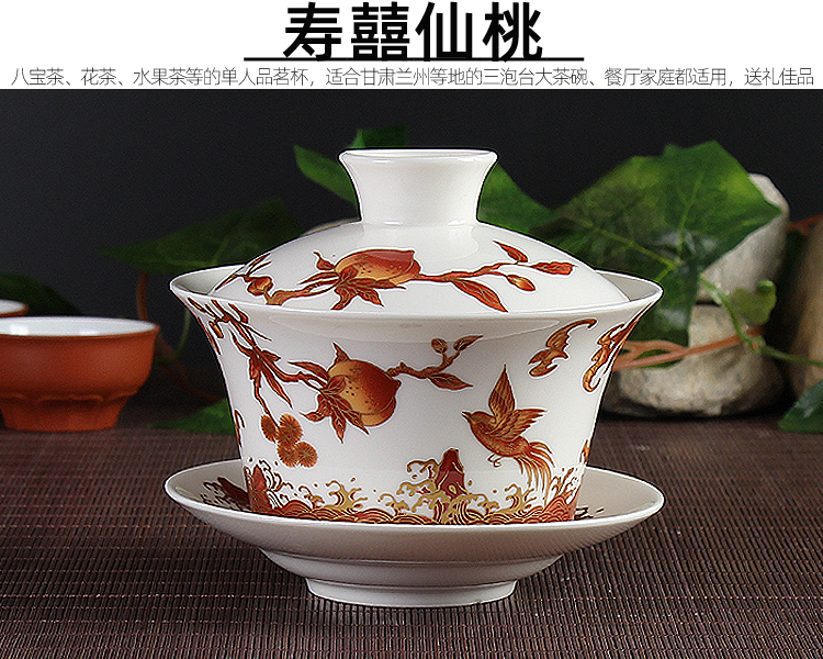 초대형 커버 그릇 도자기 Ningxia Lanzhou Yinchuan 3 배터리 홈 레스토랑 향기 차 Sicai 여덟 보물 차 큰 차 구름