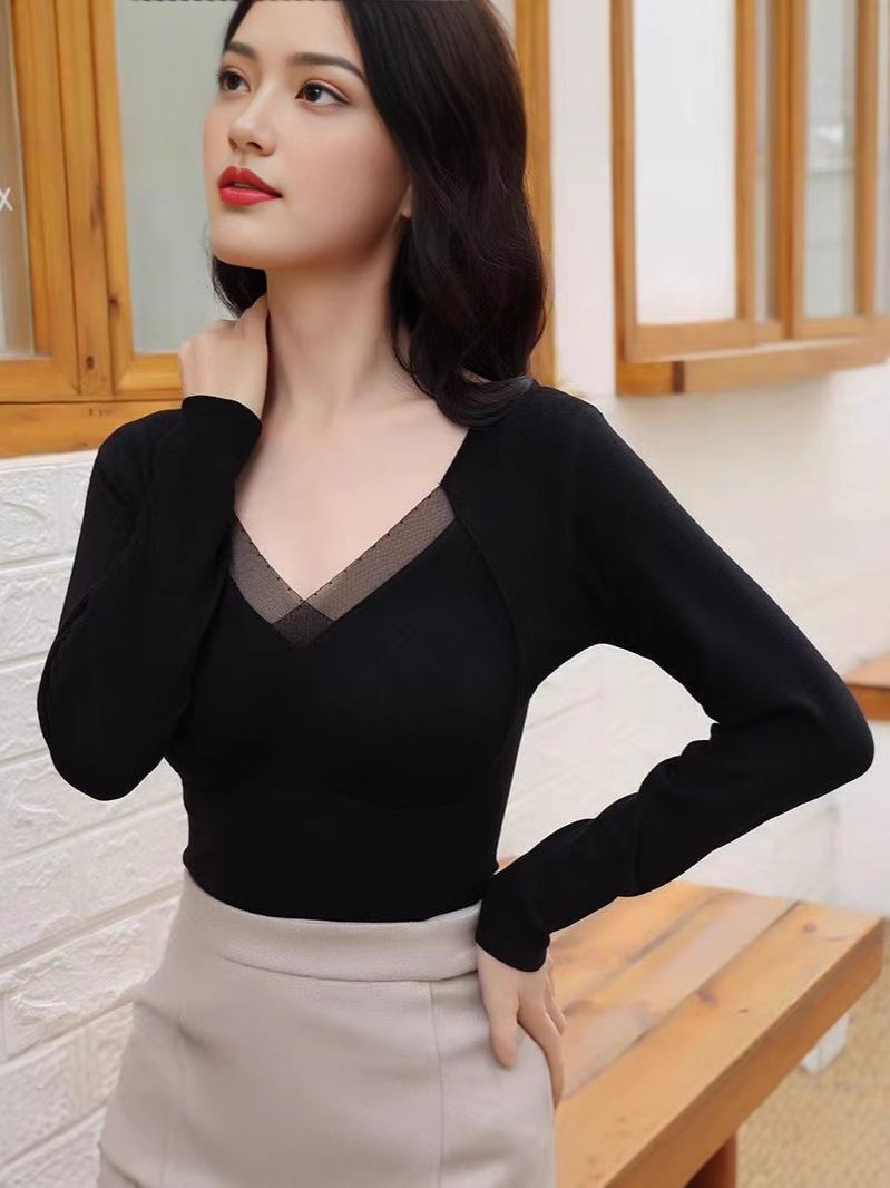공장 도매 8805 그래 핀 따뜻한 긴 소매 바닥 셔츠 여성의 열 저장 따뜻한 슬림 내부 착용 잠금 따뜻한 꽉