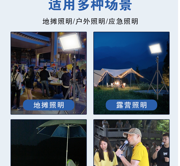 새로운 야간 시장 실속 LED 조명 충전식 모바일 야외 조명 강한 조명 브래킷 정전 비상 캠핑 조명
