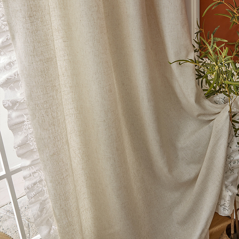 새로운 레트로 린넨 두꺼운 커튼 천 음영 커튼 거실 발코니 커튼 마감 커튼 도매스토어 가기