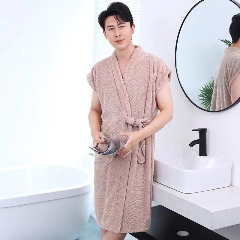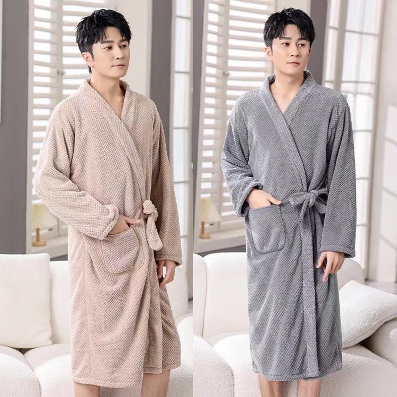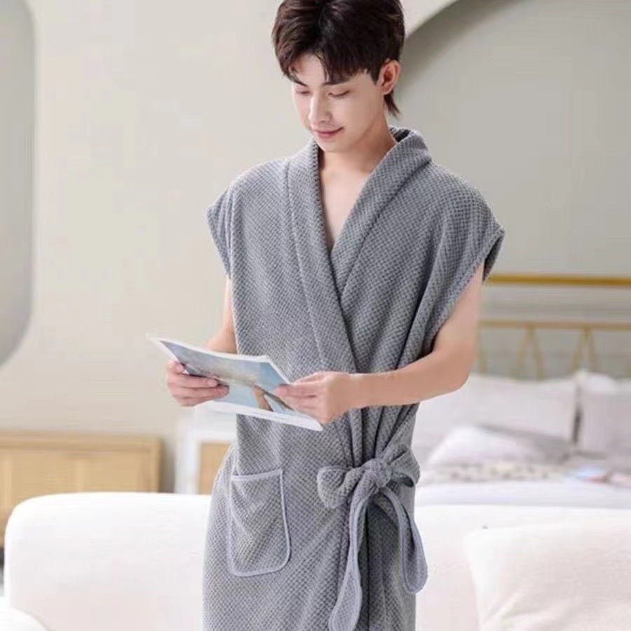 새로운 가을과 겨울 목욕 가운 긴 소매 보풀없는 흡수성 빠른 건조 남성 목욕 가운 목욕 타월 남성 목욕 가운