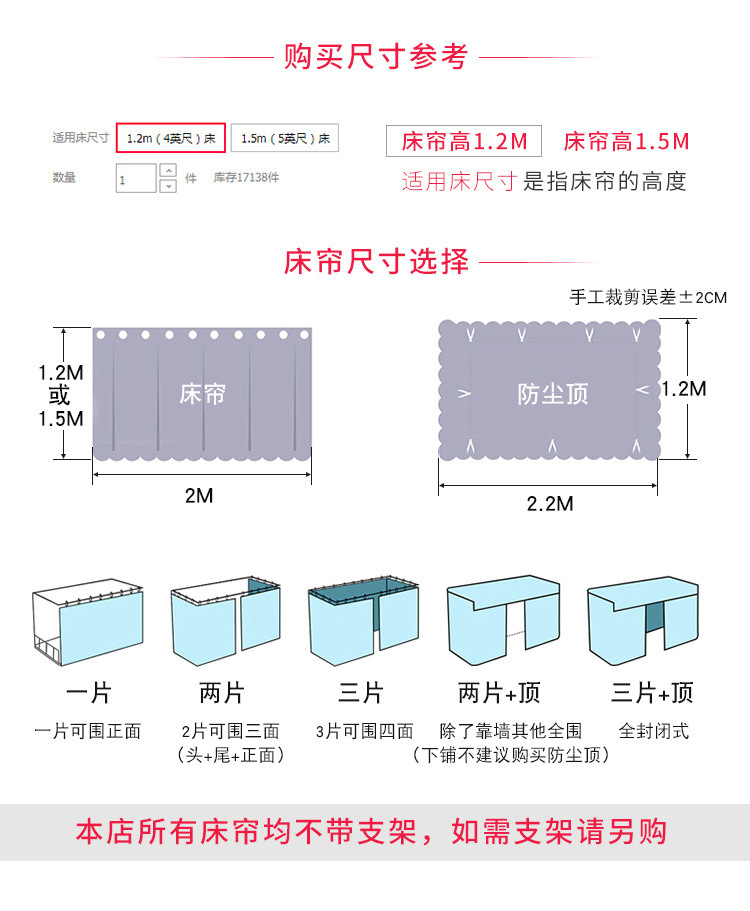 • 3개 조각 + 상단( 2m * 1.2m ) 하부 침대에 권장