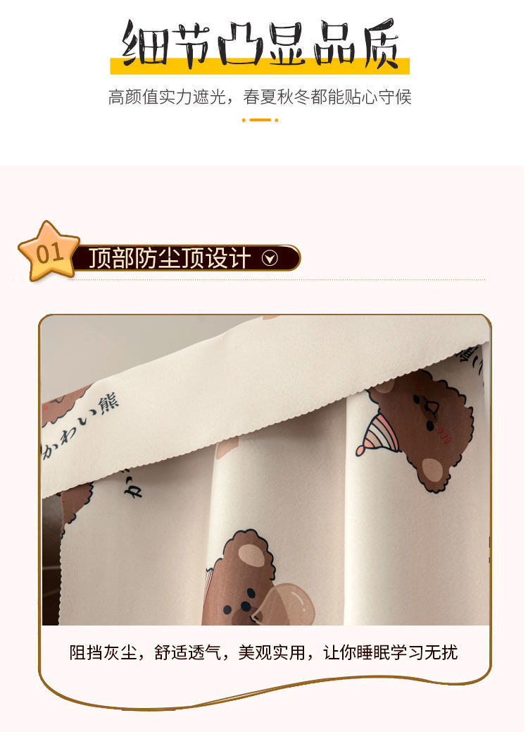 학생 기숙사 차광 침대 커튼 두꺼운 물리적 상단 침대 남성 하단 침대 여성 기숙사 ins 스타일 커튼 간단한 침대 커튼스토어 가기