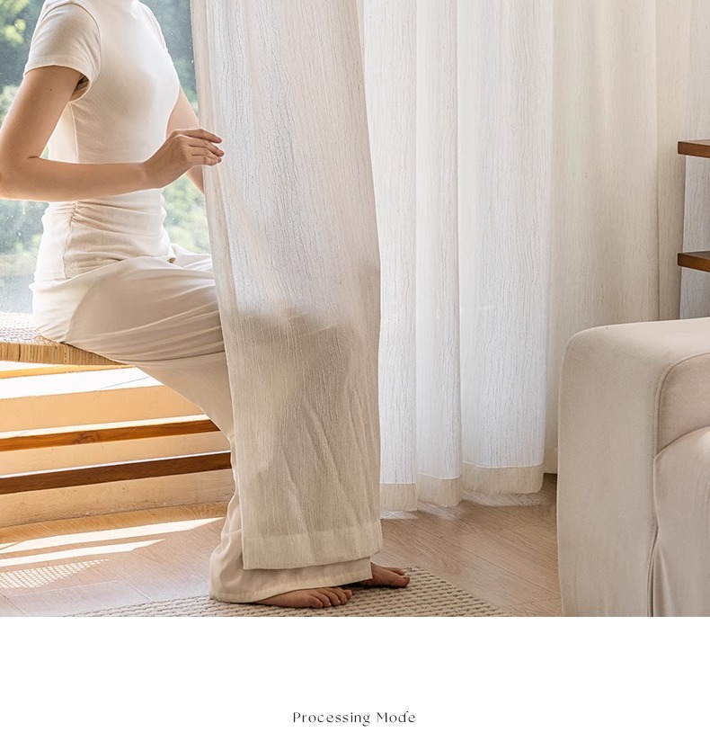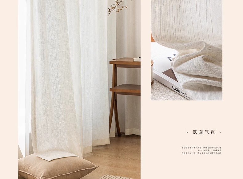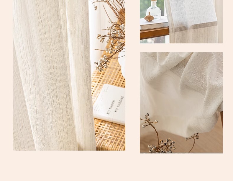 일본식 면 및 린넨 커튼 거즈 커튼은 빛을 투과하지 않고 2025년 새로운 스타일의 거실 발코니 베드벤치 창 중세 스타일의 창 거즈 흰색 거즈