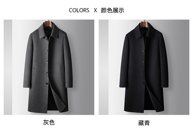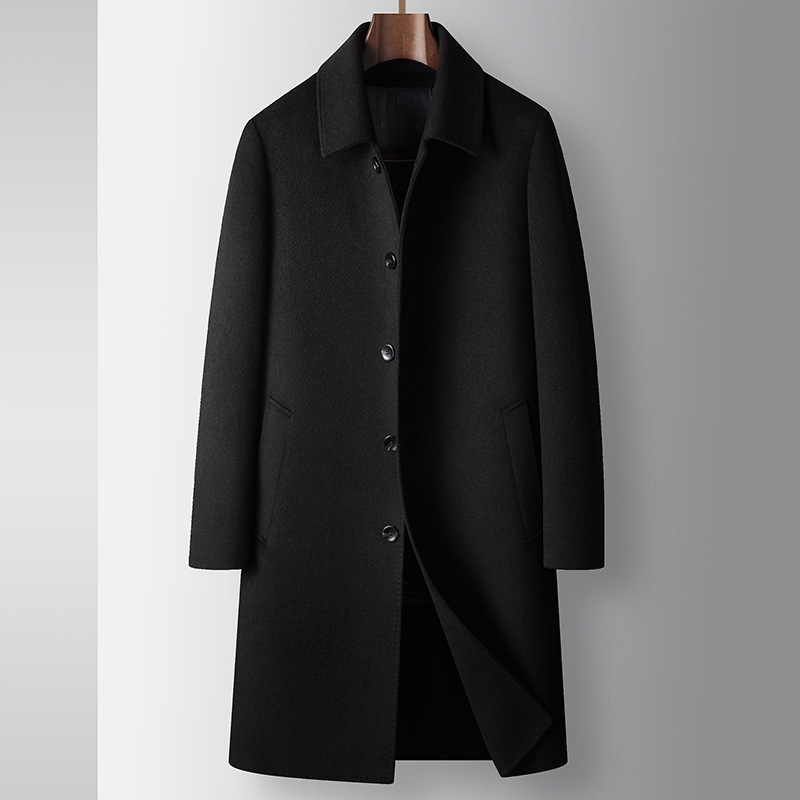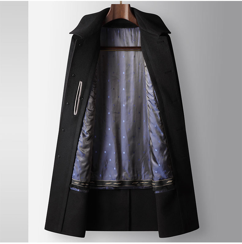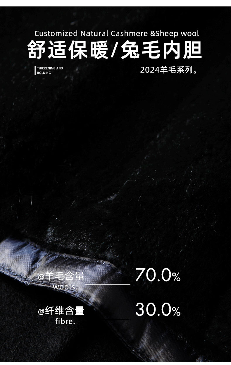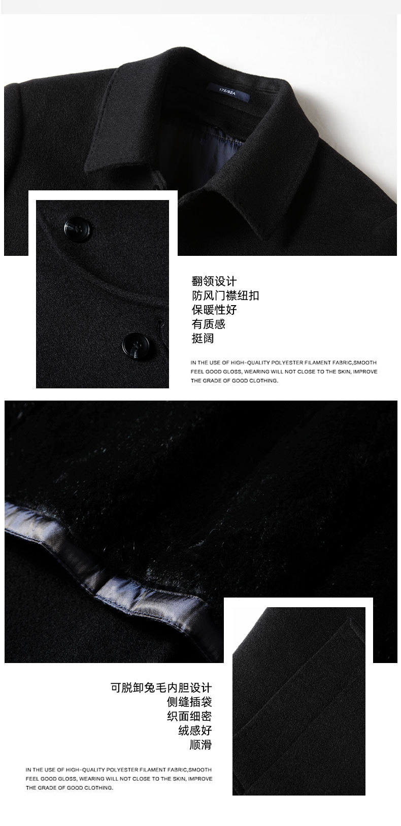 남자 모직 코트 가을과 겨울 긴 경영진 옷깃 중년 사업, 토끼 모피 라이너 양모 코트 하역