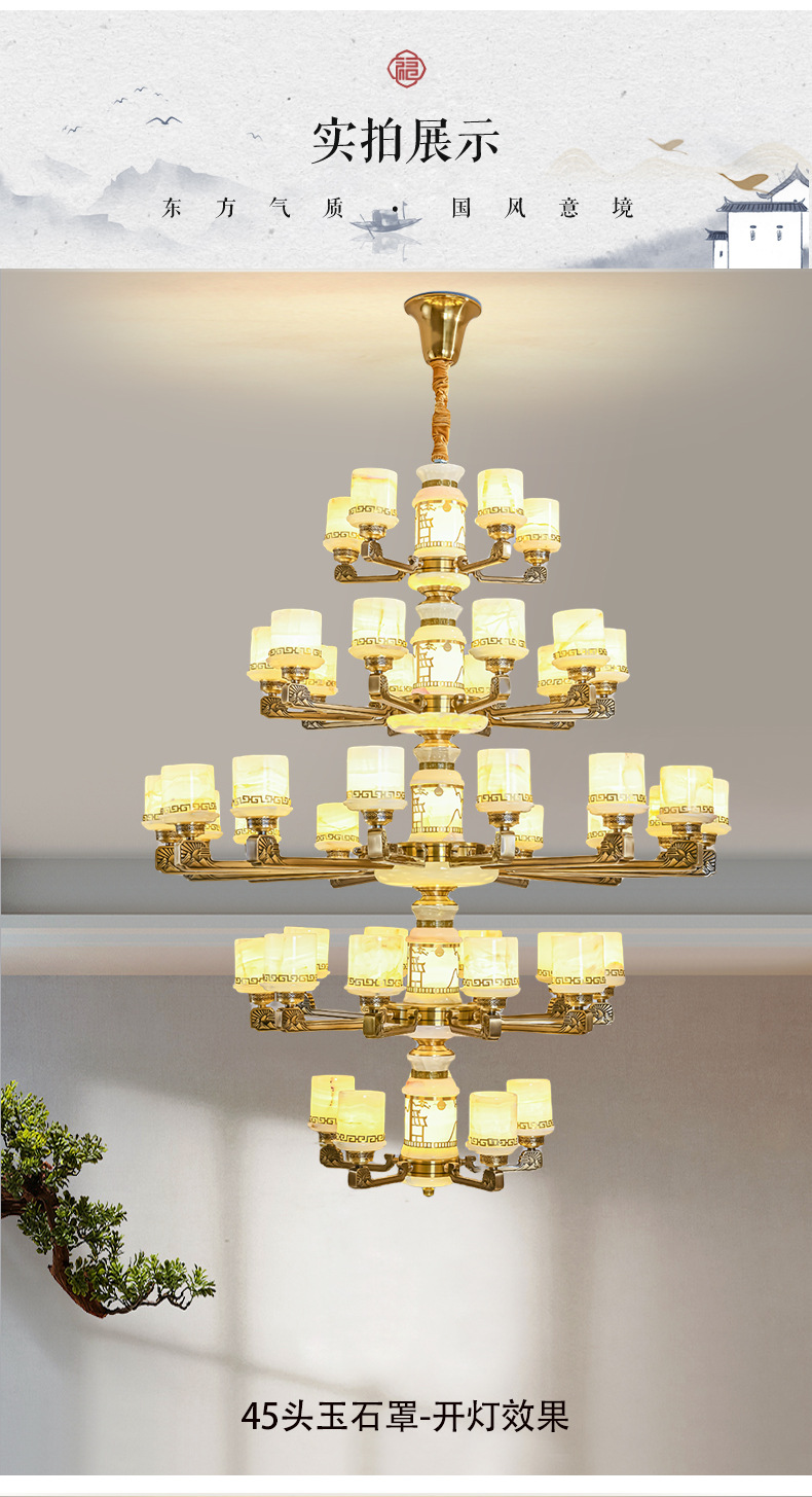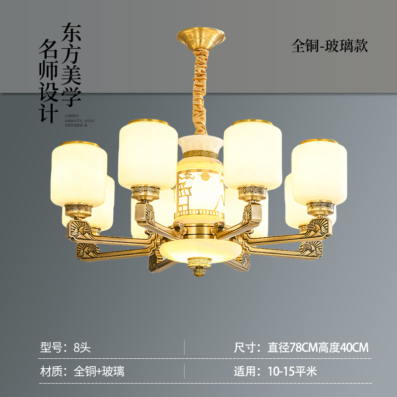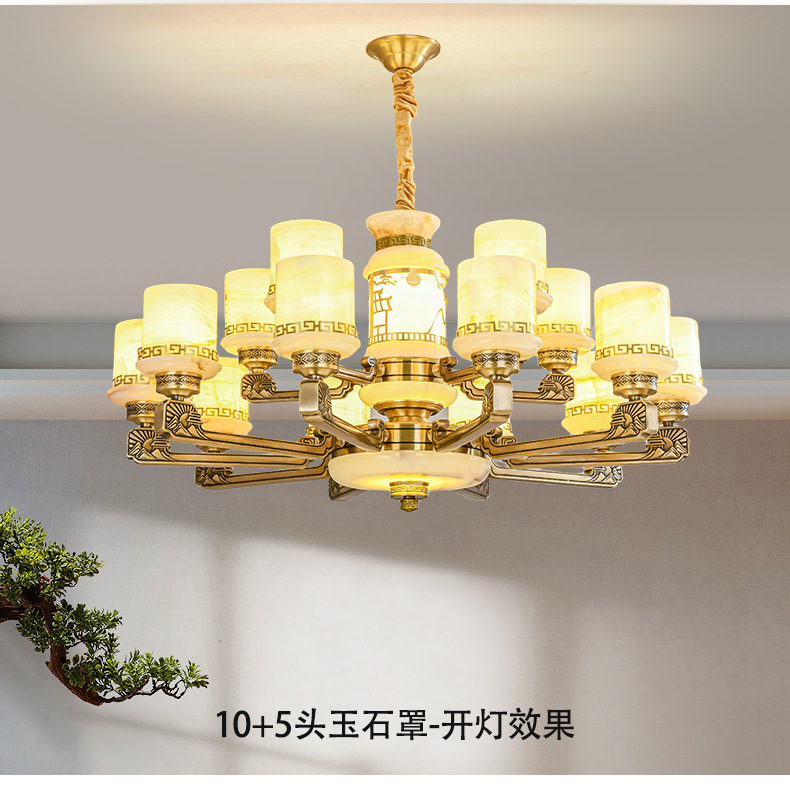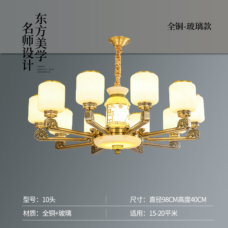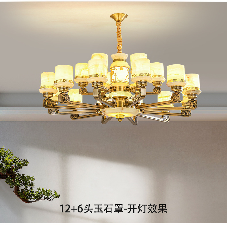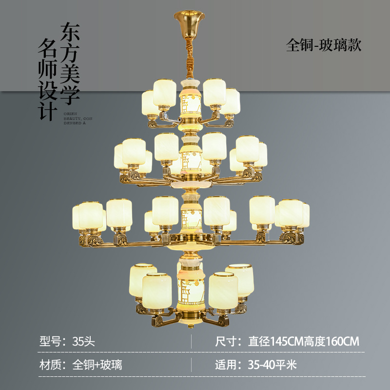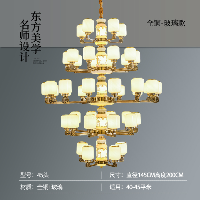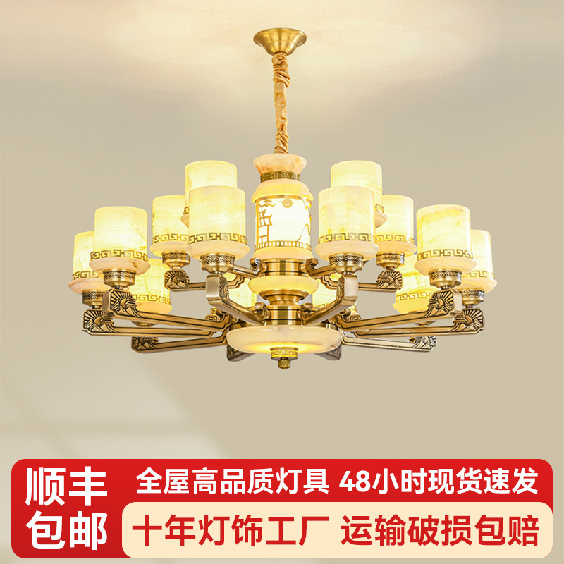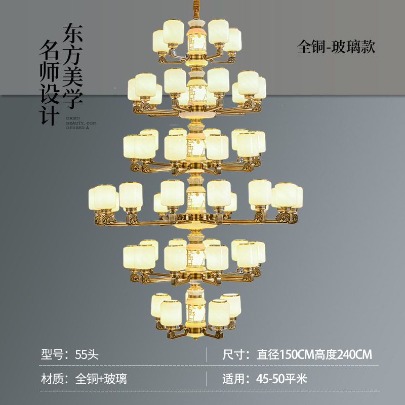 새로운 중국 스타일 모든 구리 옥 거실 샹들리에 트윈 빌딩 빌라 2024 새로운 중국 스타일 선 레스토랑 램프