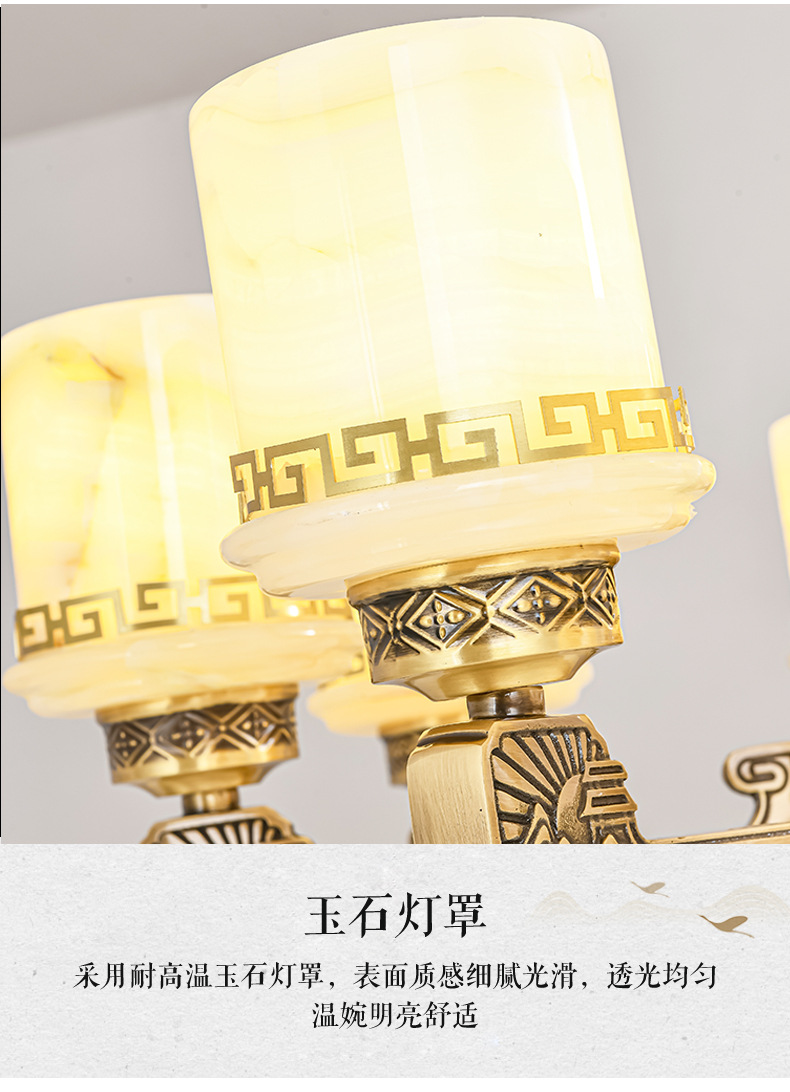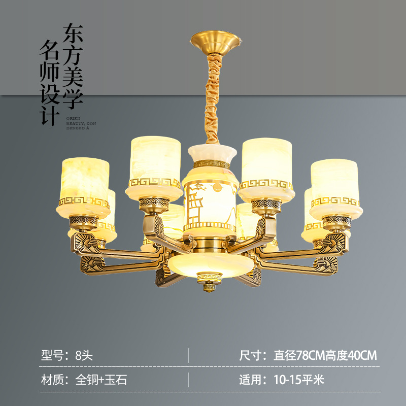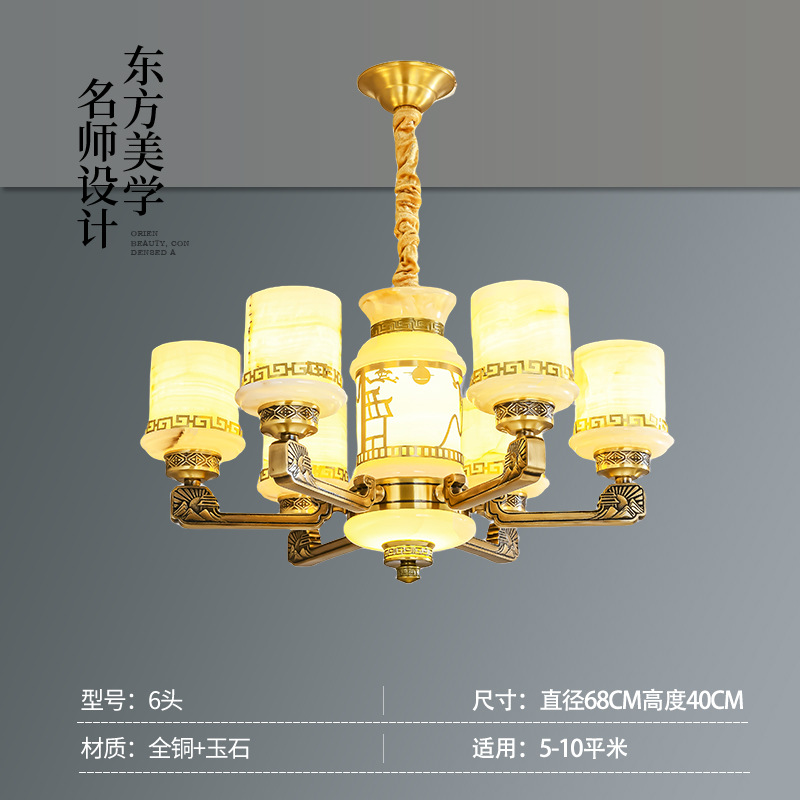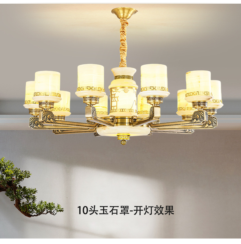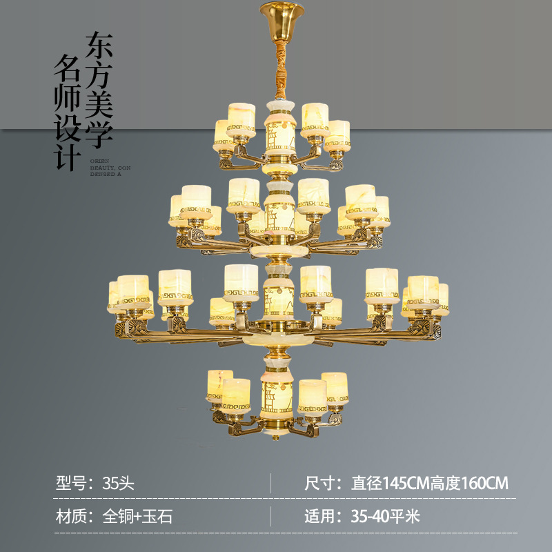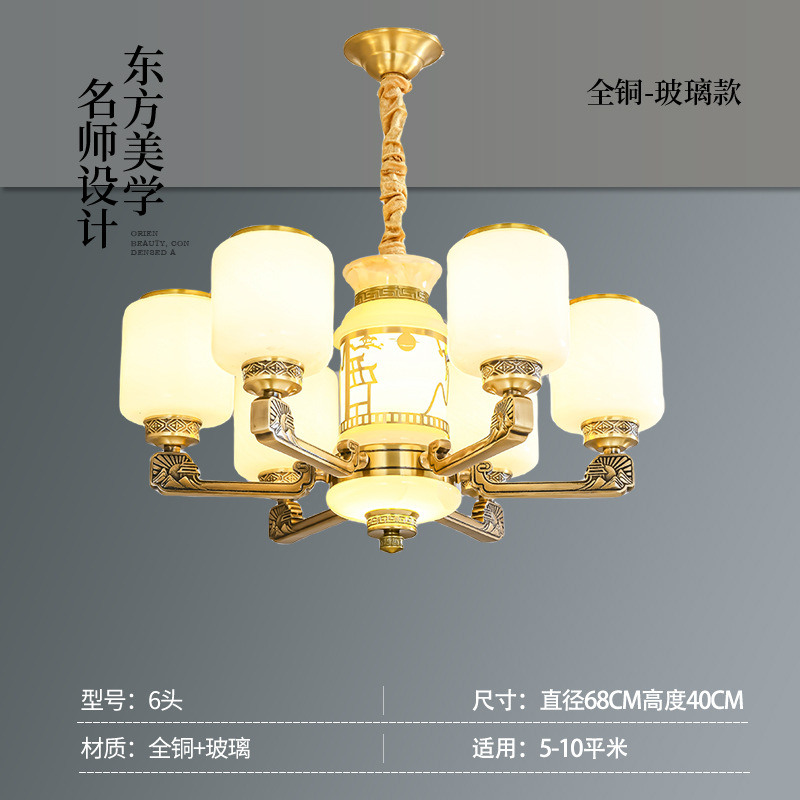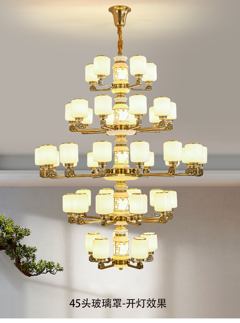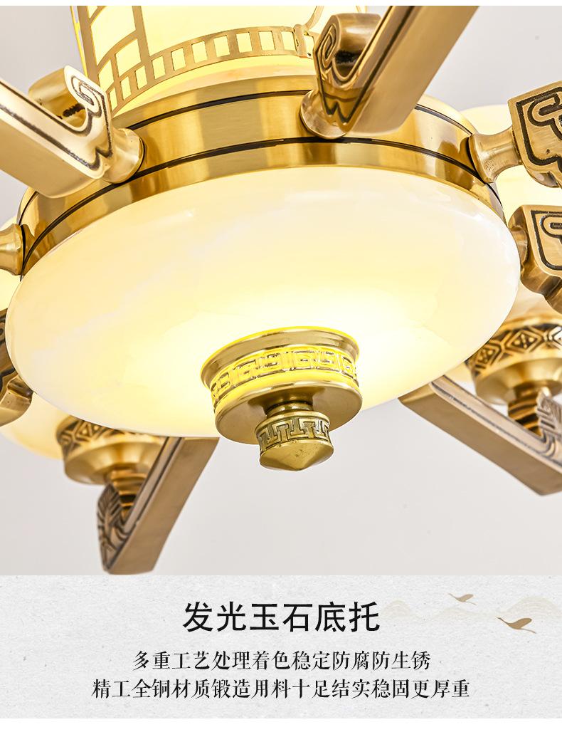 새로운 중국 스타일 모든 구리 옥 거실 샹들리에 트윈 빌딩 빌라 2024 새로운 중국 스타일 선 레스토랑 램프