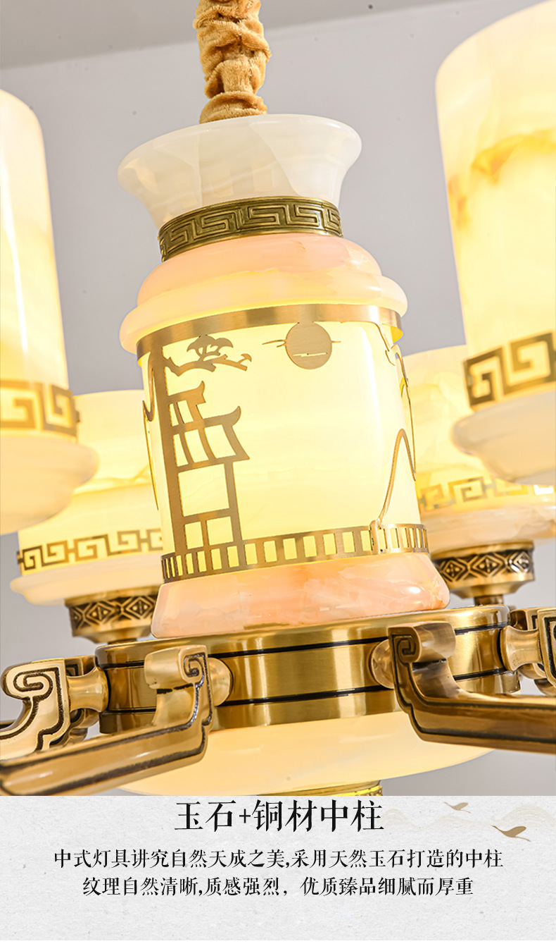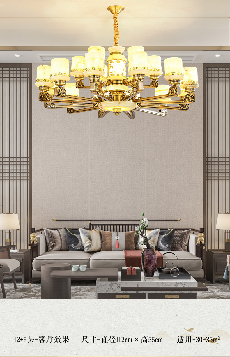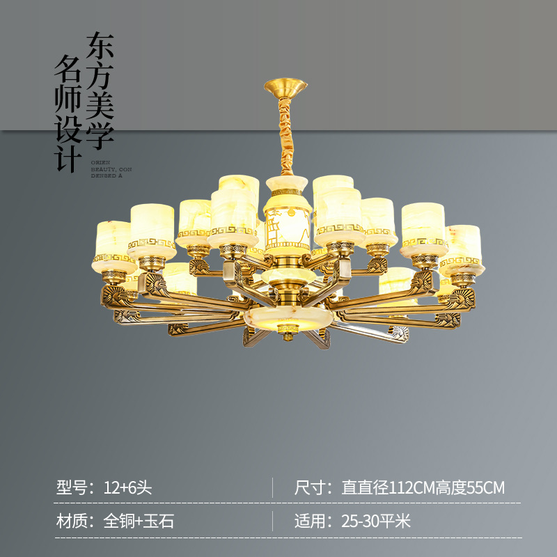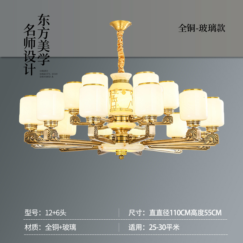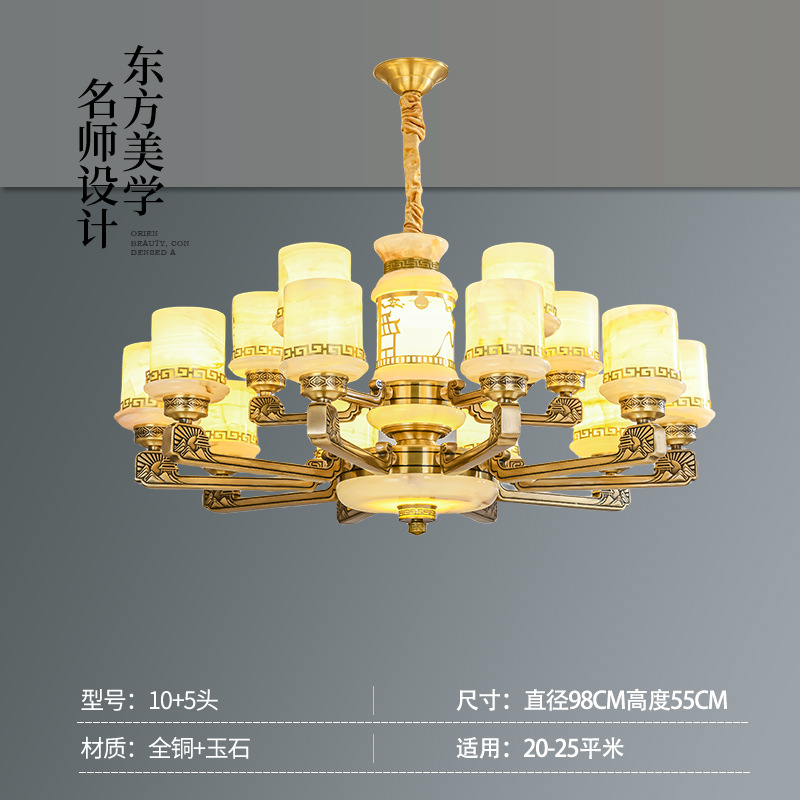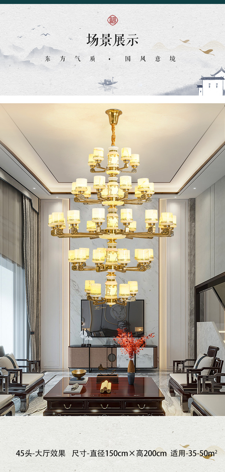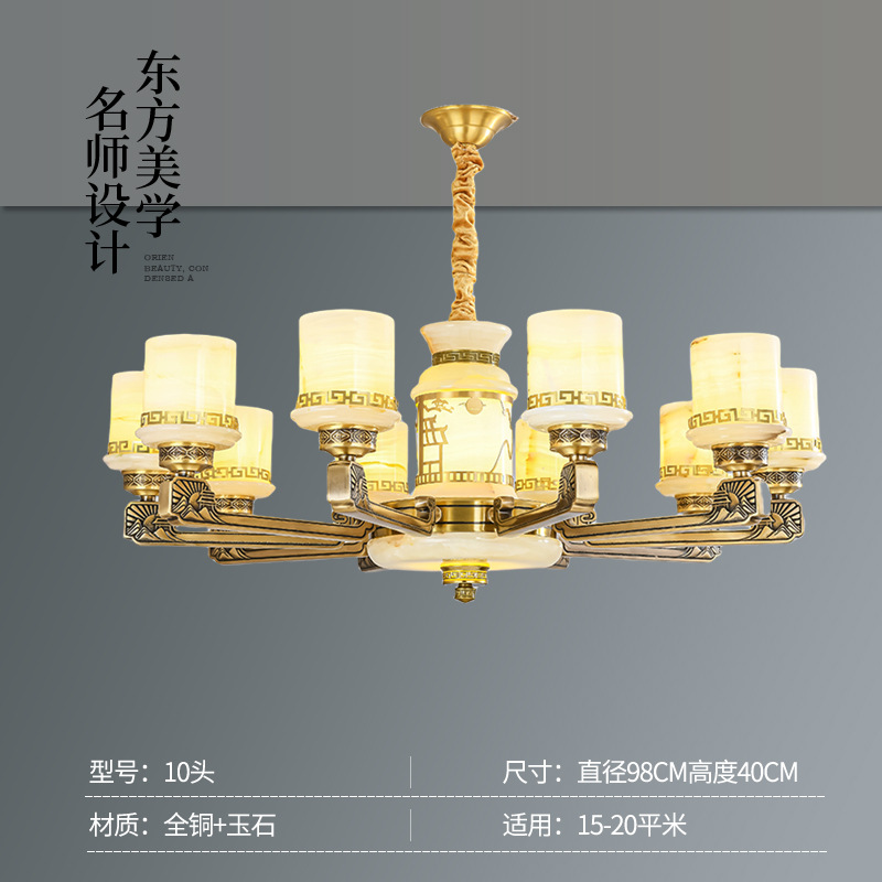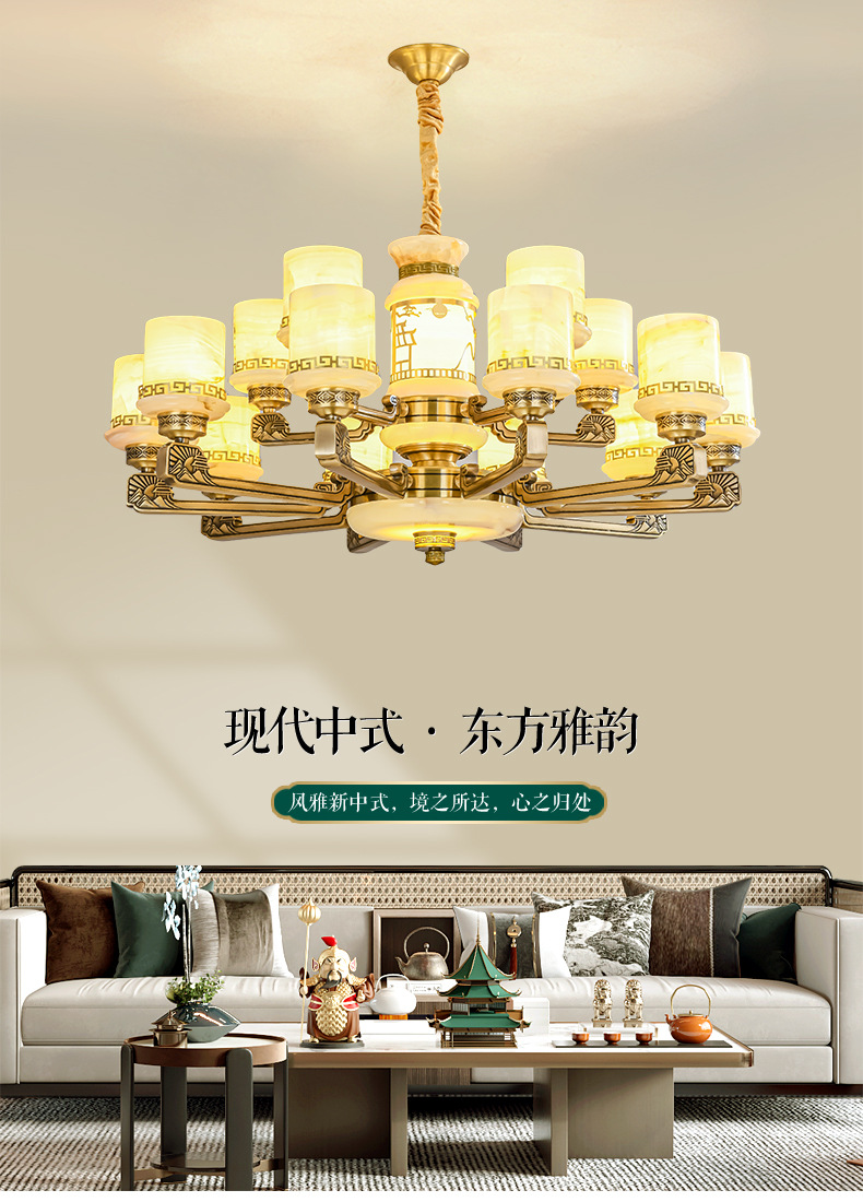 새로운 중국 스타일 모든 구리 옥 거실 샹들리에 트윈 빌딩 빌라 2024 새로운 중국 스타일 선 레스토랑 램프