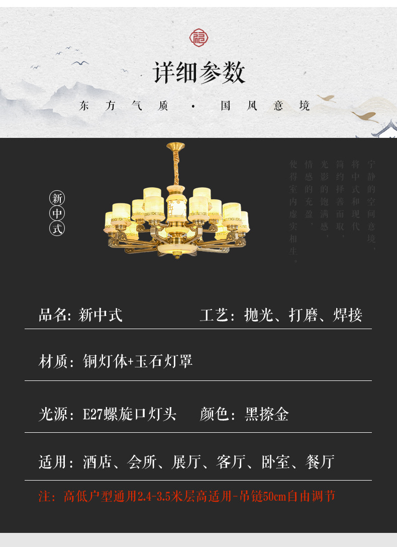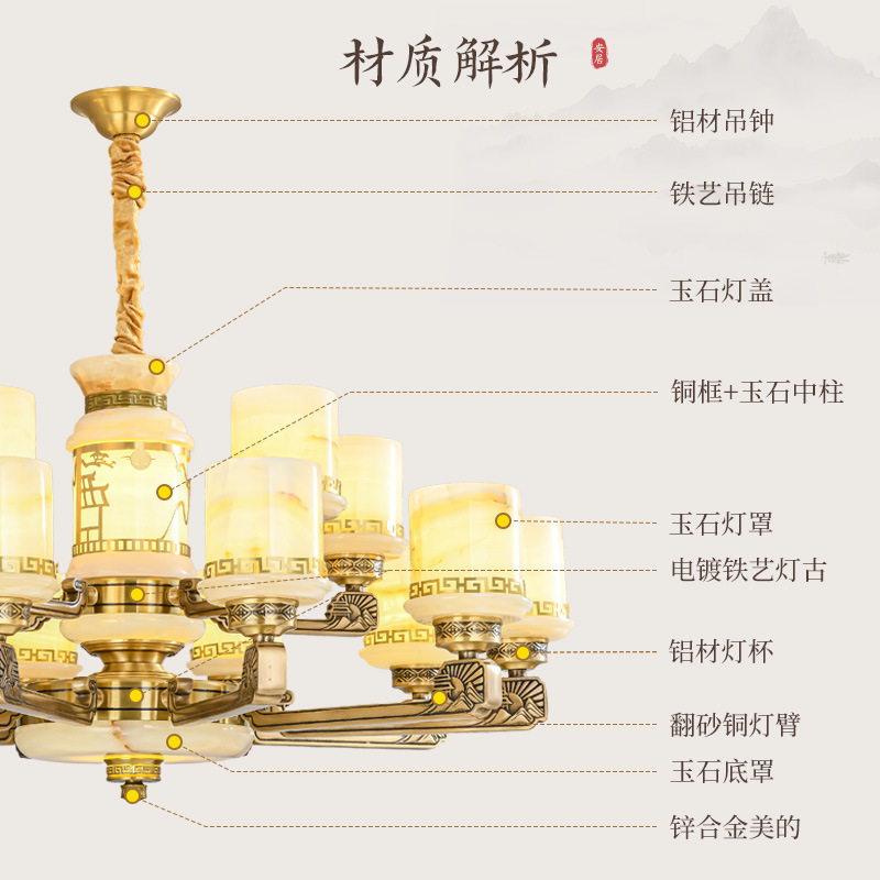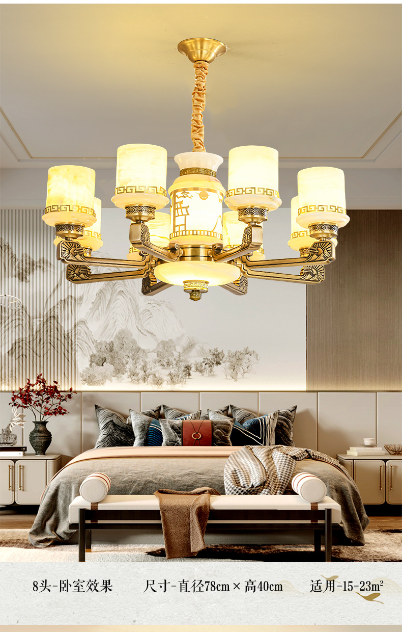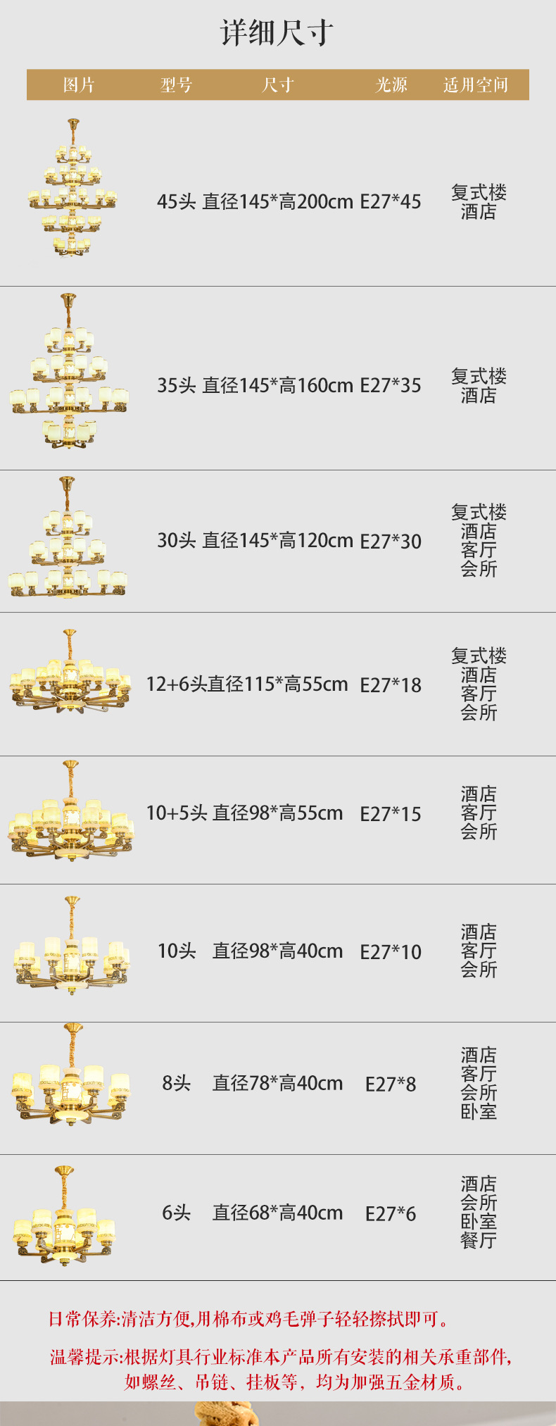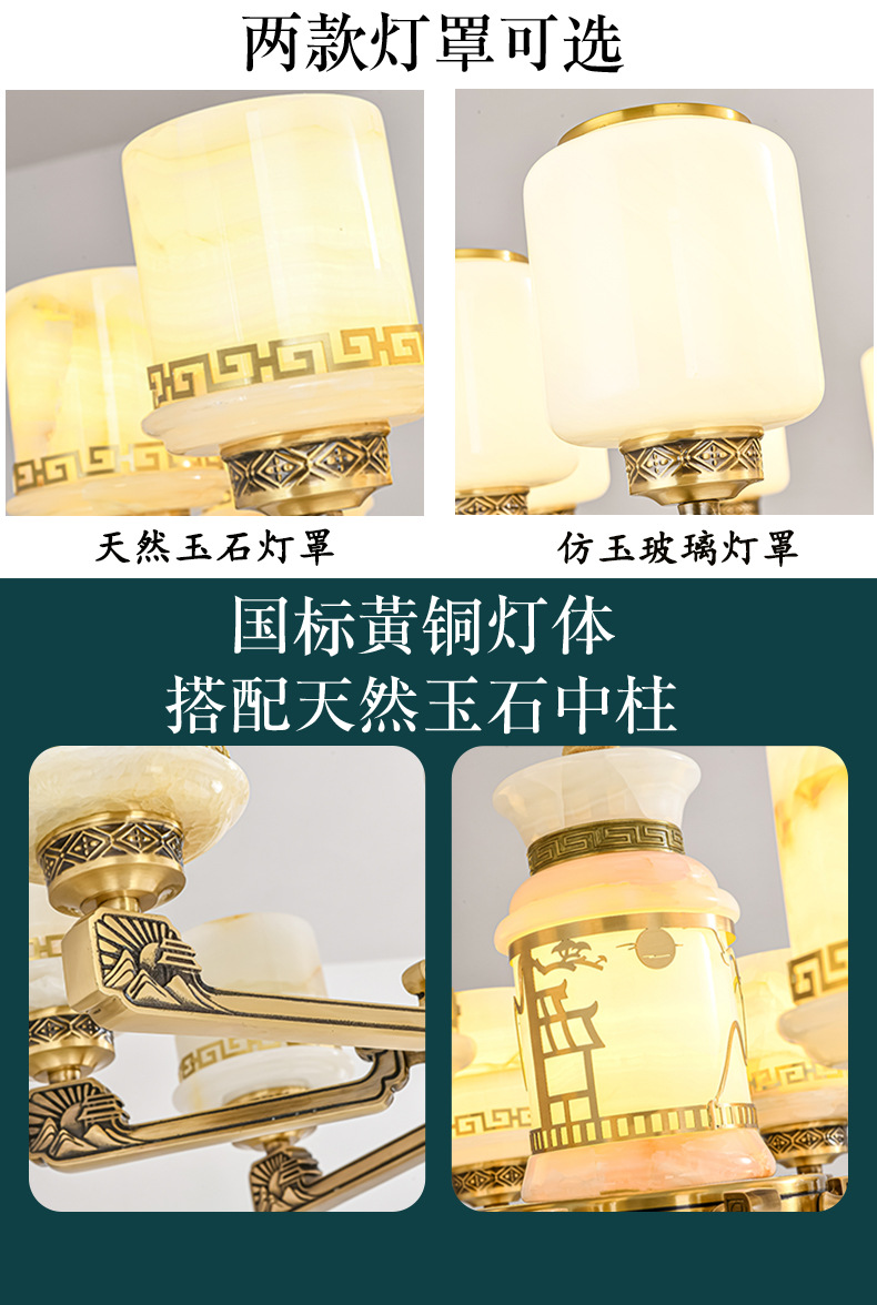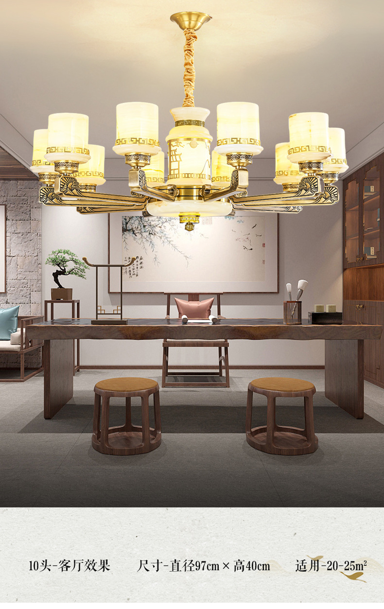 새로운 중국 스타일 모든 구리 옥 거실 샹들리에 트윈 빌딩 빌라 2024 새로운 중국 스타일 선 레스토랑 램프