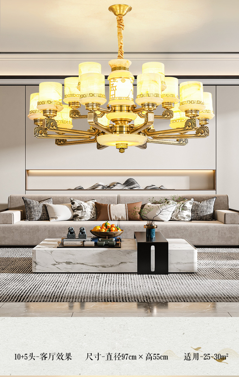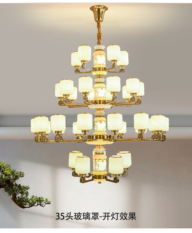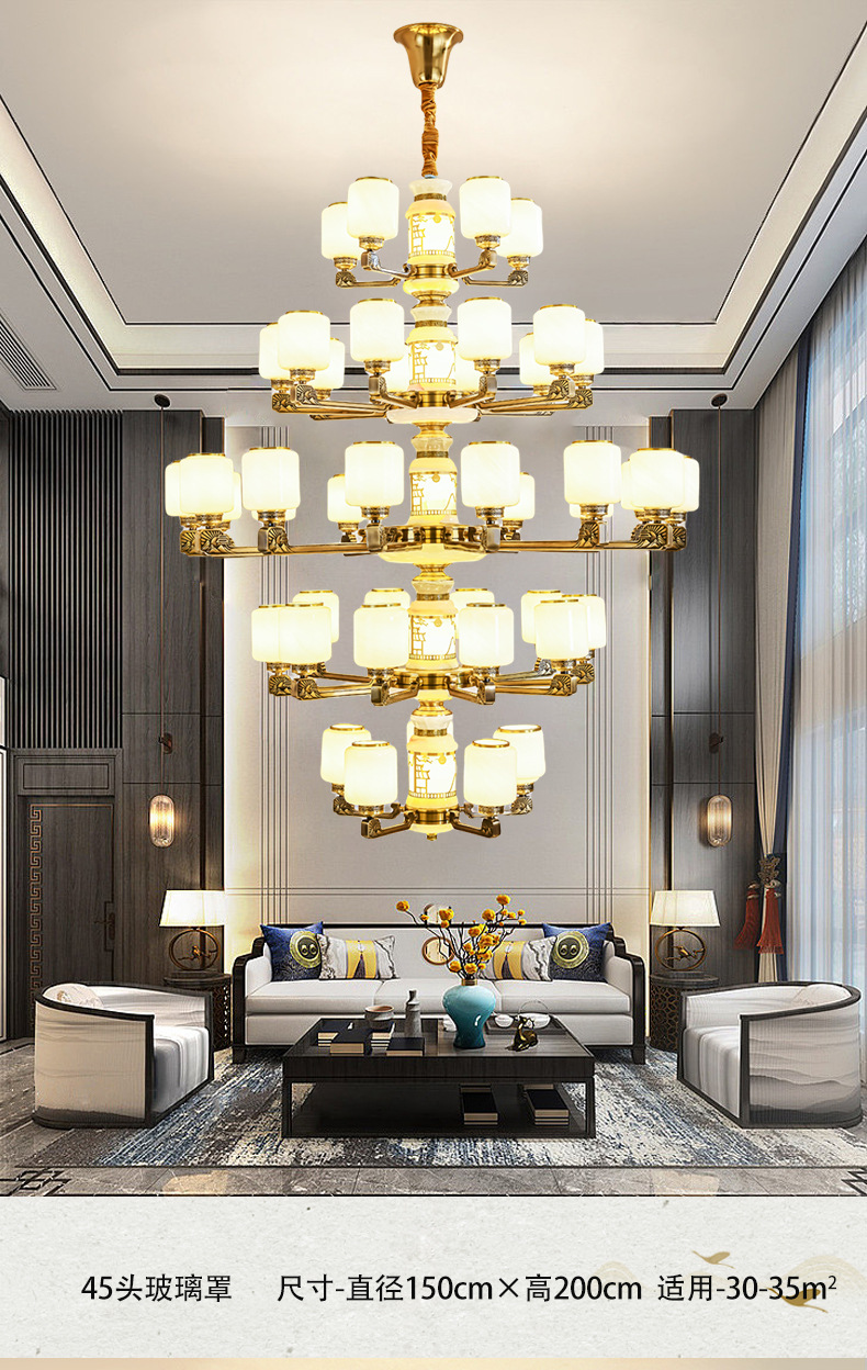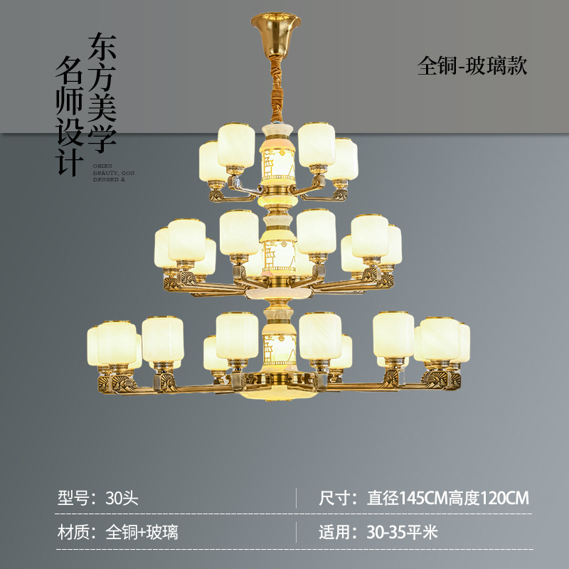 새로운 중국 스타일 모든 구리 옥 거실 샹들리에 트윈 빌딩 빌라 2024 새로운 중국 스타일 선 레스토랑 램프스토어 가기