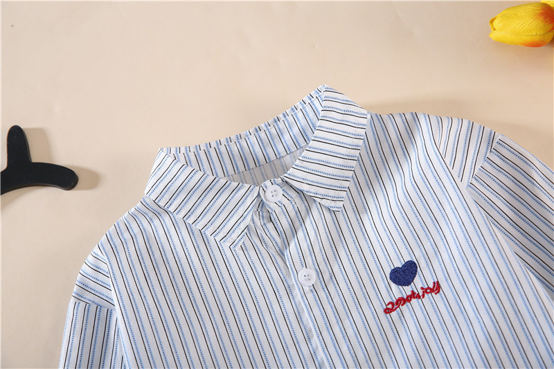 • 블루 세로 스트라이프 러브 셔츠 싱글피스