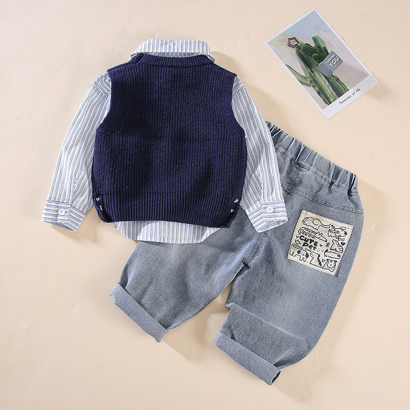 어린이 봄과 가을 스웨터 셔츠 3 종 세트 어린 소년의 가을 서양식 스웨터 세트 아동복 아기의 봄과 가을 세트스토어 가기