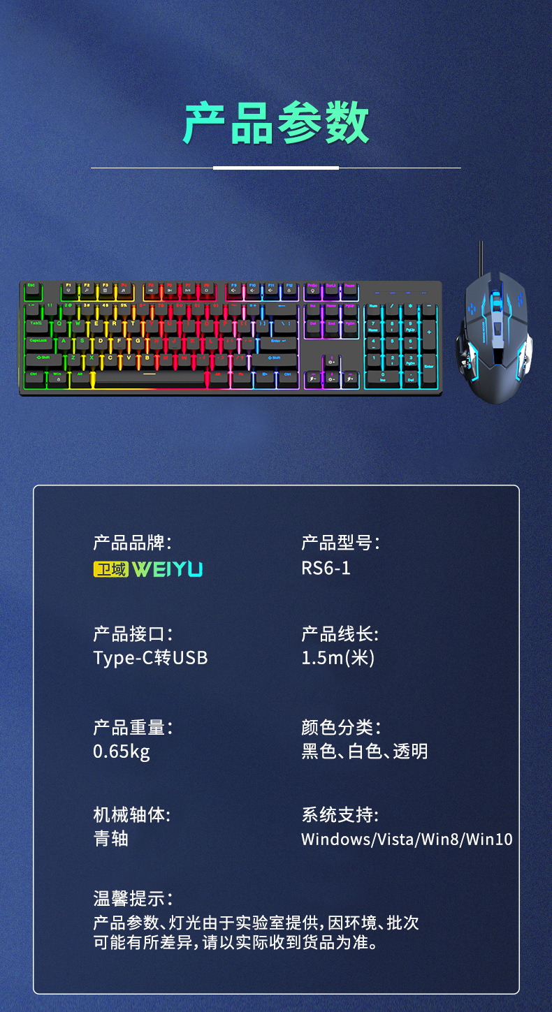 • RS6-1 진정한 기계식 104키 파란색 축 검정색 키보드 + e스포츠 마우스