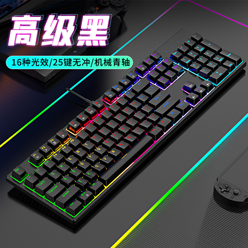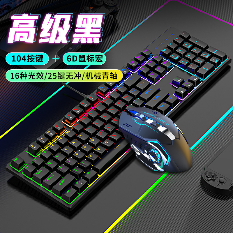 제조사 재고정리 104키 청축 RGB 혼합색상 진정한 기계식 키보드 마우스 매크로 게이밍 컴퓨터 데스크탑 도매