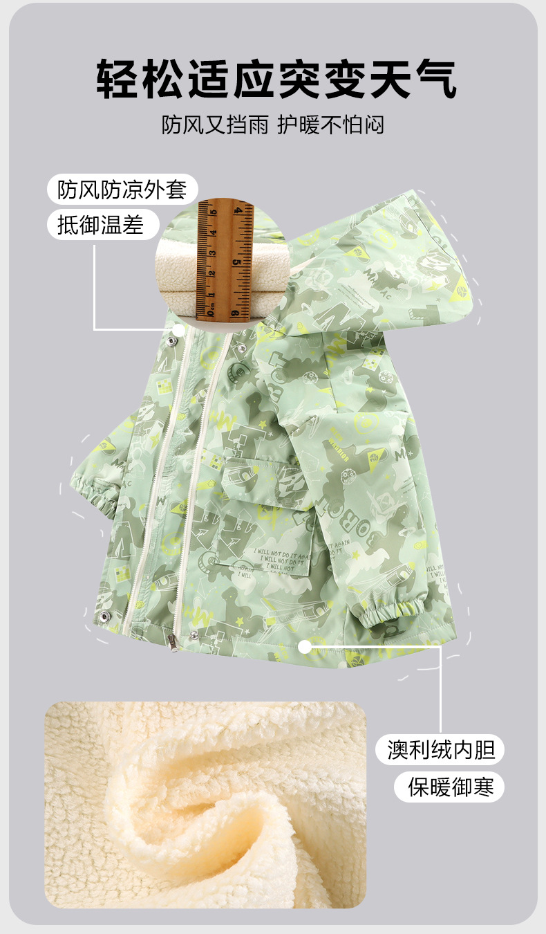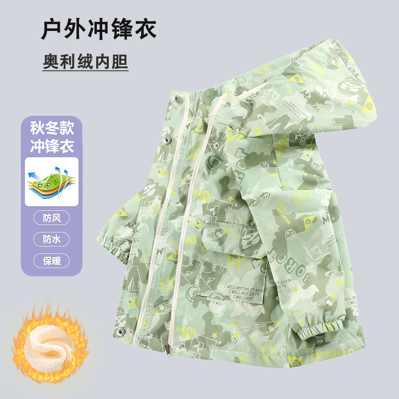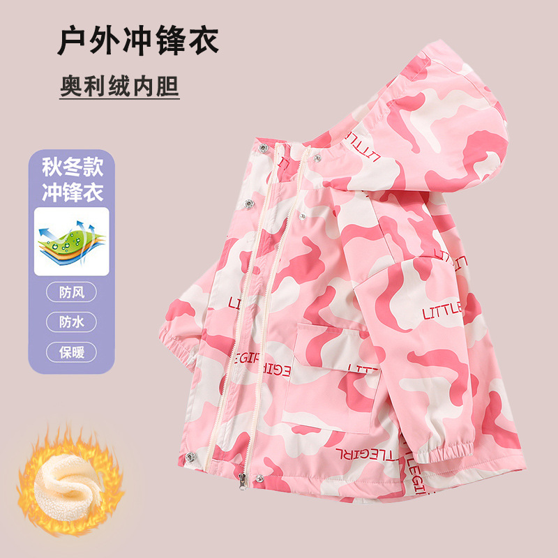 가을과 겨울 기모 3 가지 증거 충전 의류 올림픽 곡물 벨벳 라이너 어린이 후드 따뜻한 탑 야외 하이킹 재킷