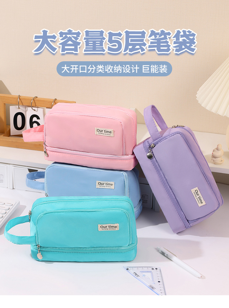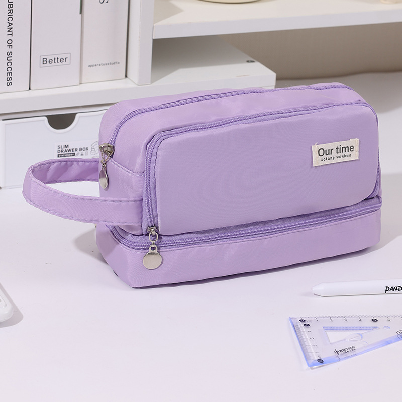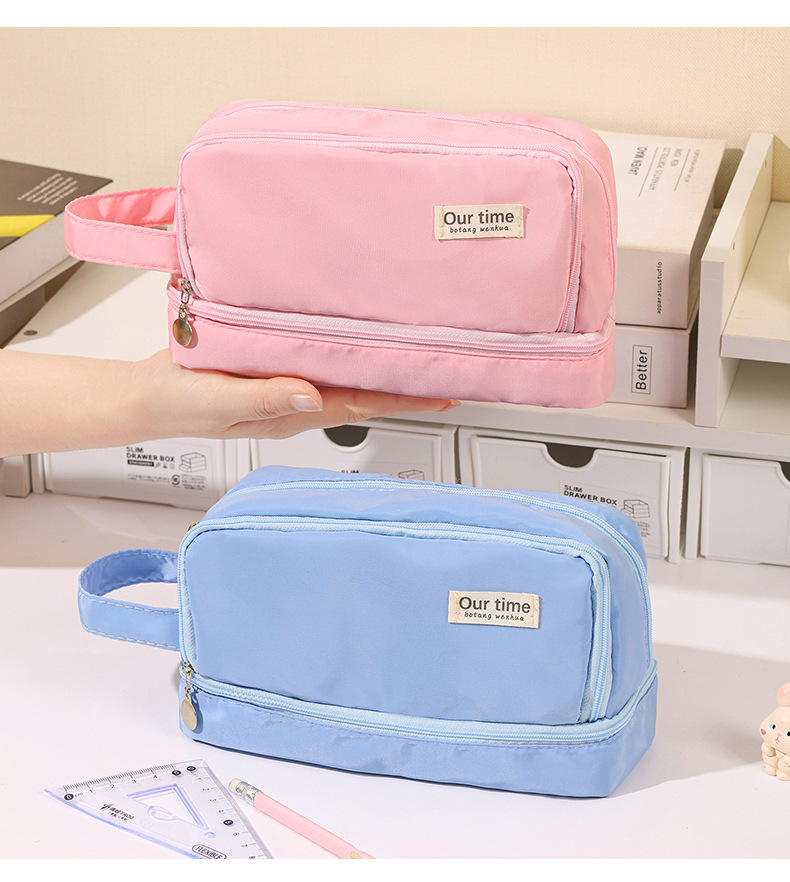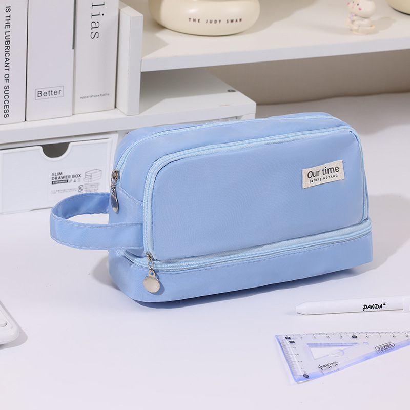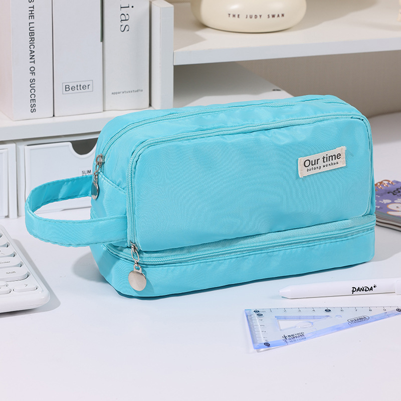 간단한 다기능 연필 케이스 문구 케이스 문구 가방 중학생 및 초등학생을위한 대용량 연필 케이스 더블 레이어 연필 가방