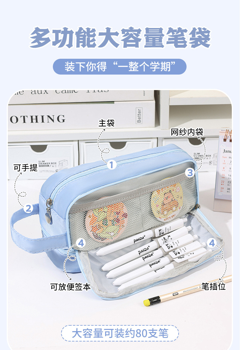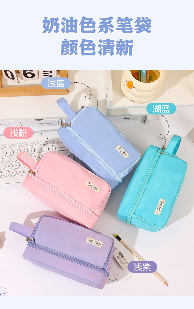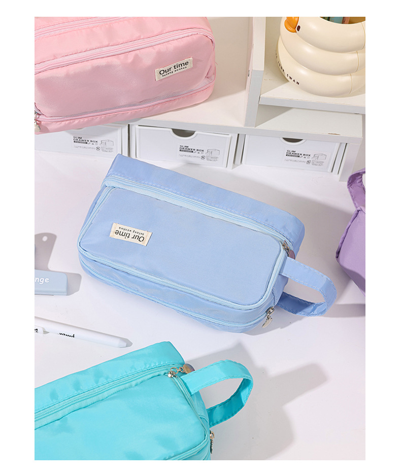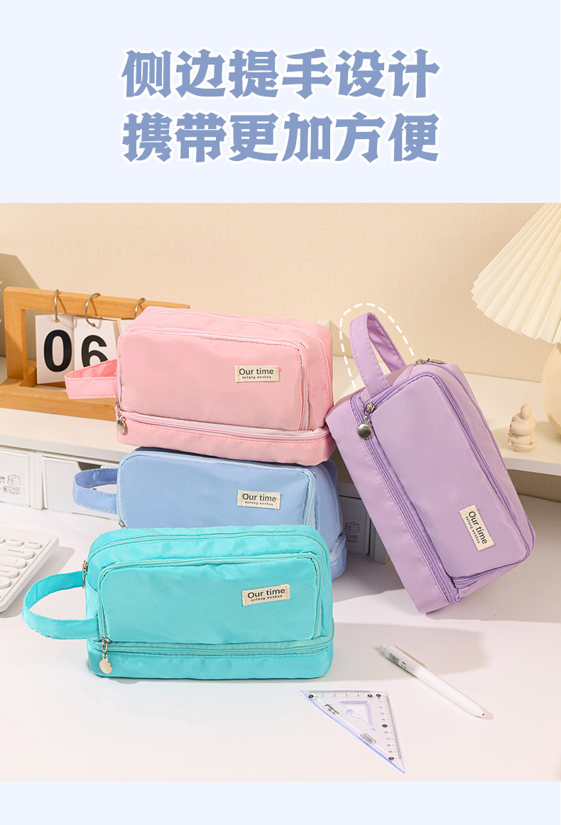 간단한 다기능 연필 케이스 문구 케이스 문구 가방 중학생 및 초등학생을위한 대용량 연필 케이스 더블 레이어 연필 가방