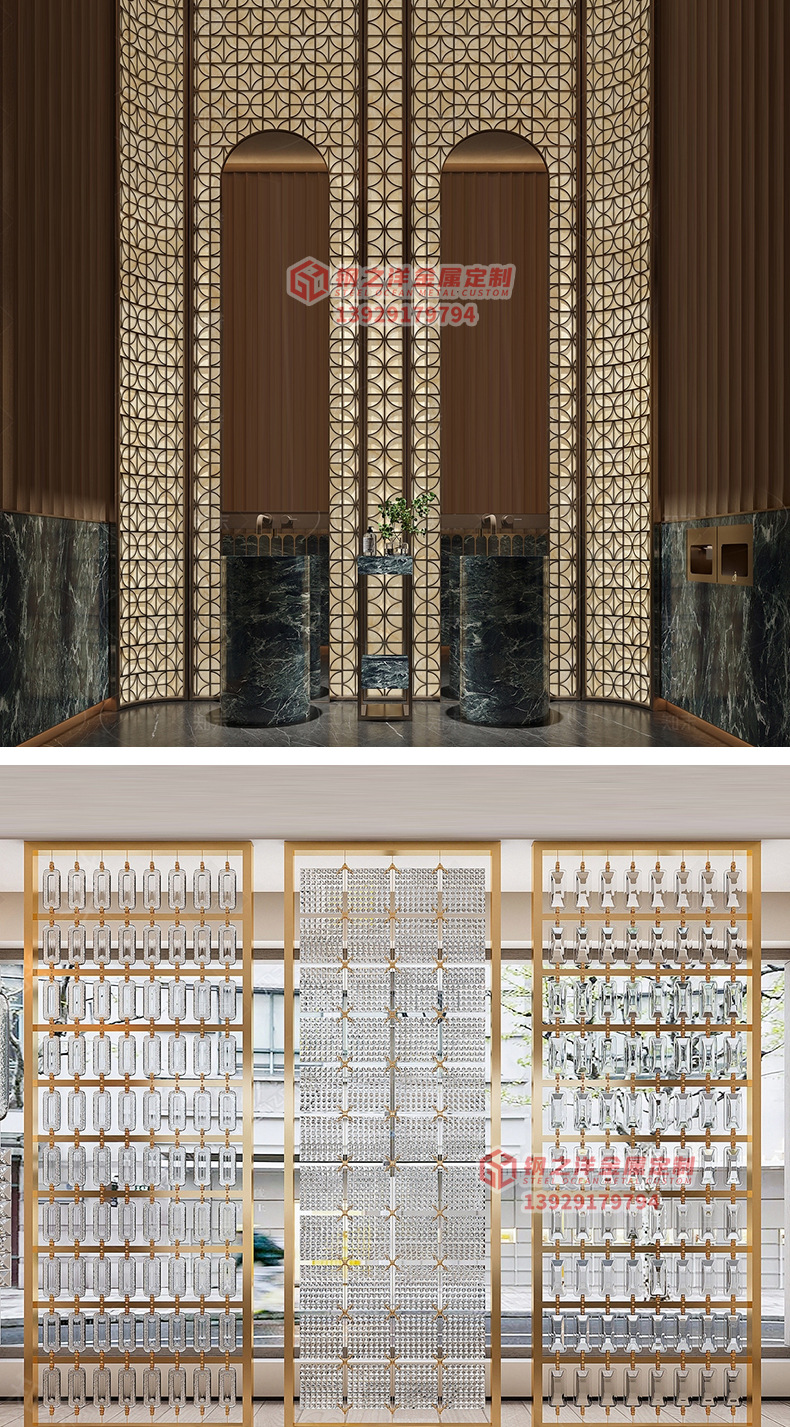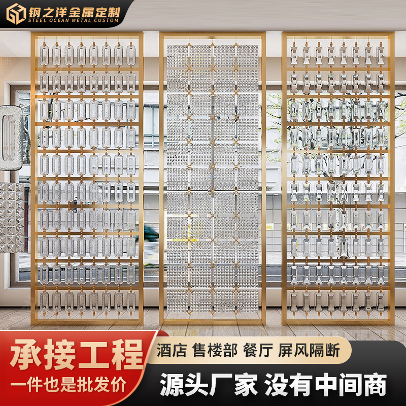 거실 중공 크리스탈 펜던트 스크린을 위한 호텔 입장 복도 파티션을 위한 가벼운 럭셔리 스테인리스 크리스탈 유리 스크린스토어 가기