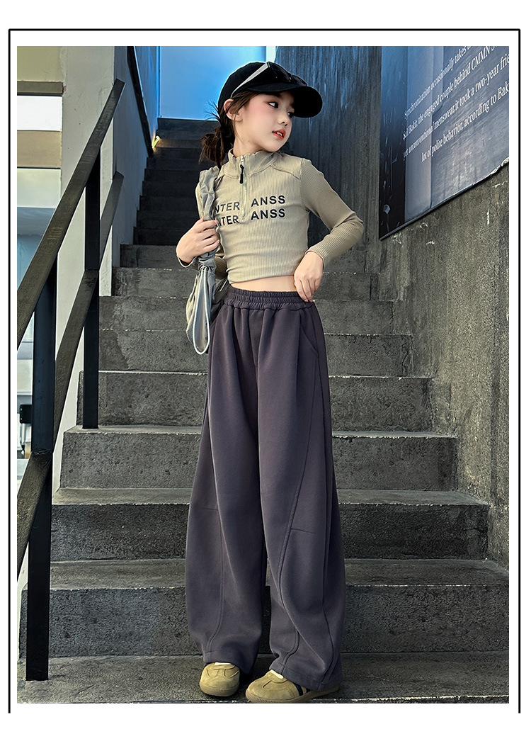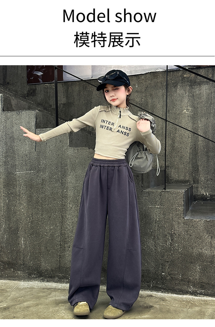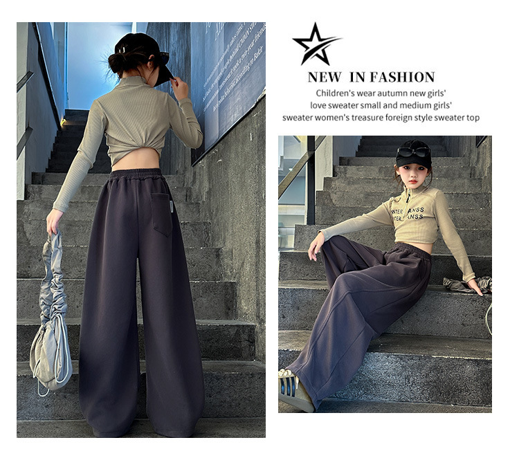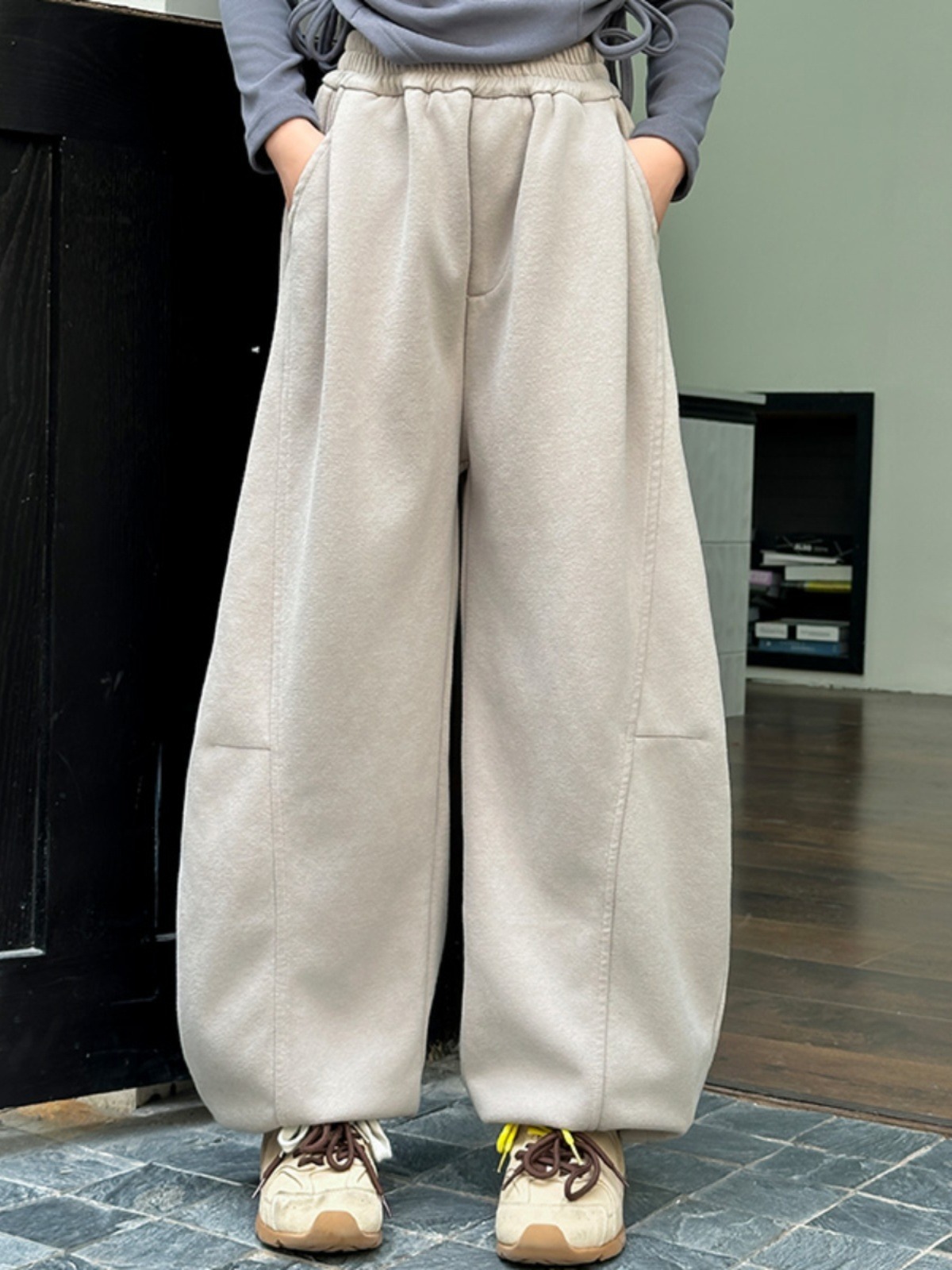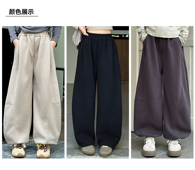 소녀 바나나 바지 가을과 겨울 기모 중대형 어린이 서양식 드로우 스트링 와이드 레그 스웨트 팬츠 어린이 봄과 가을 캐주얼 스포츠 바지 트렌디