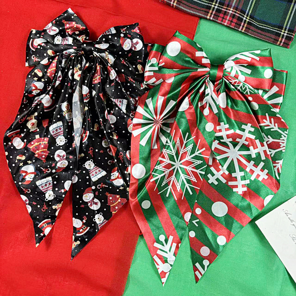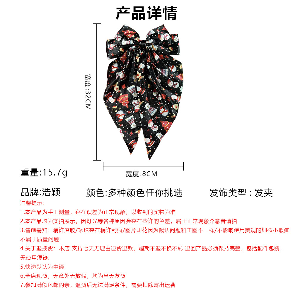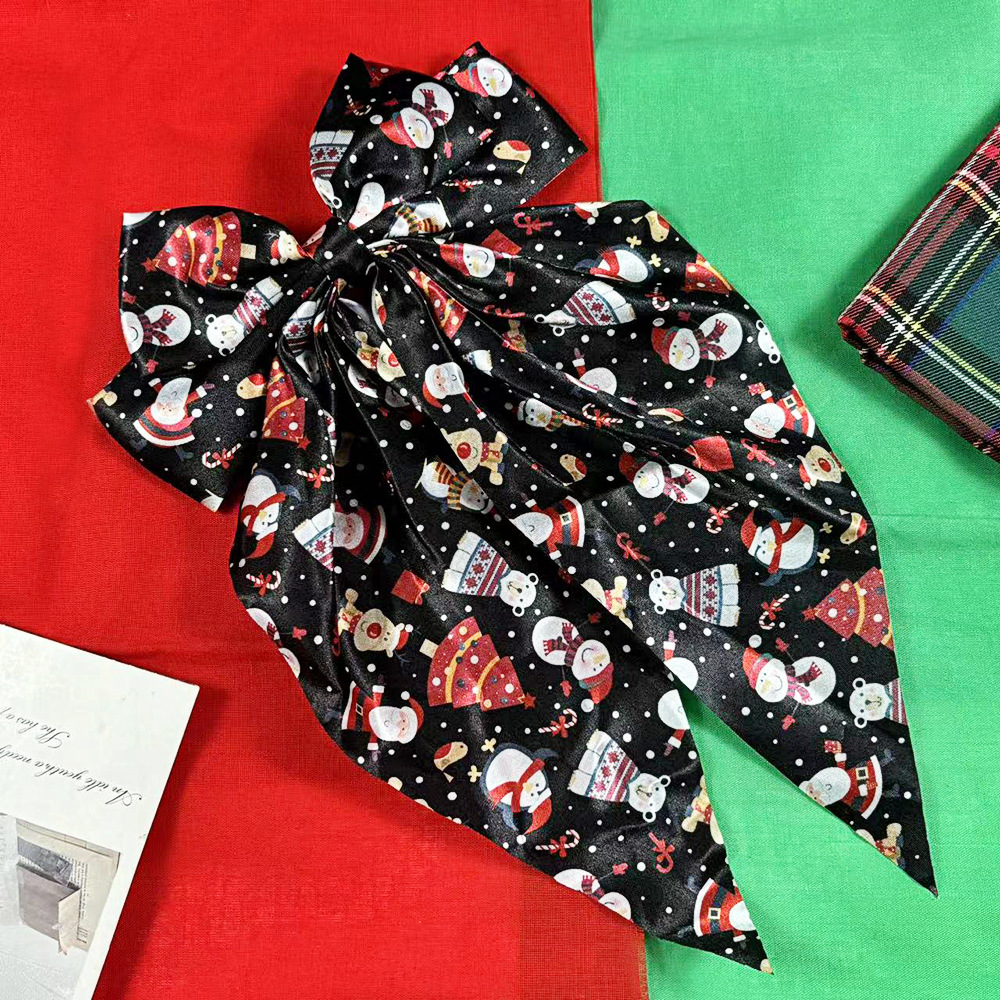 • 크리스마스 블랙 빅 리본 리본 머리핀