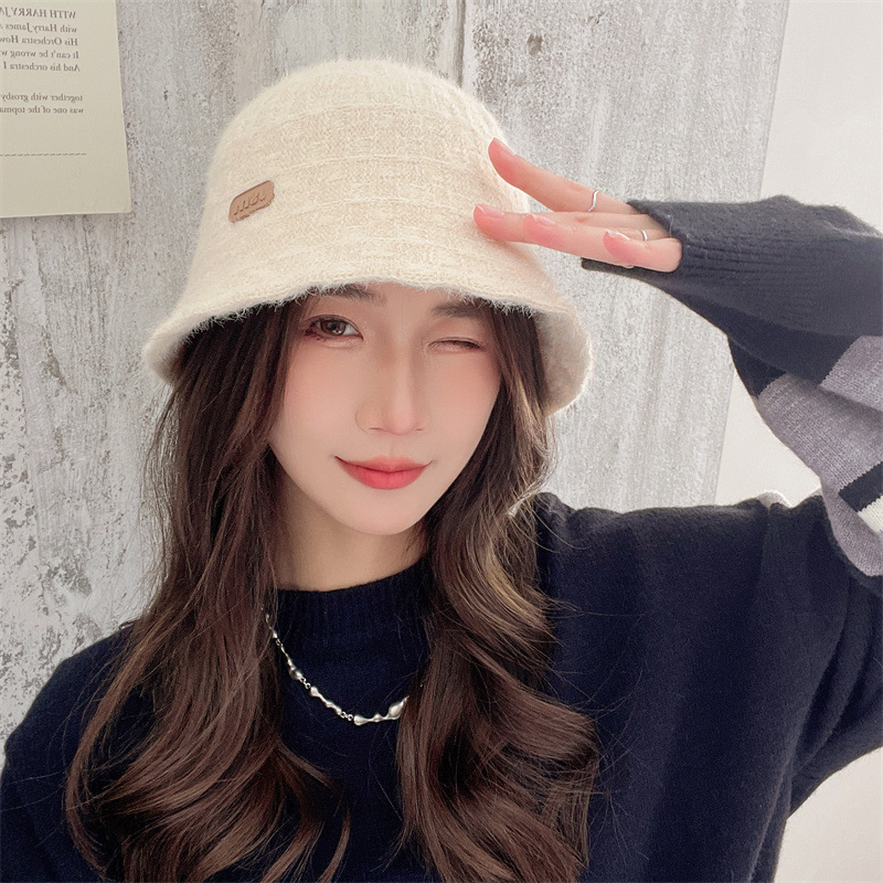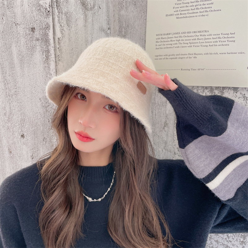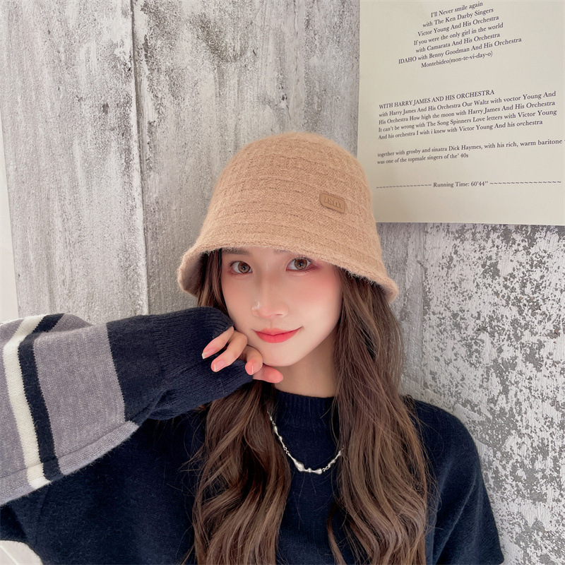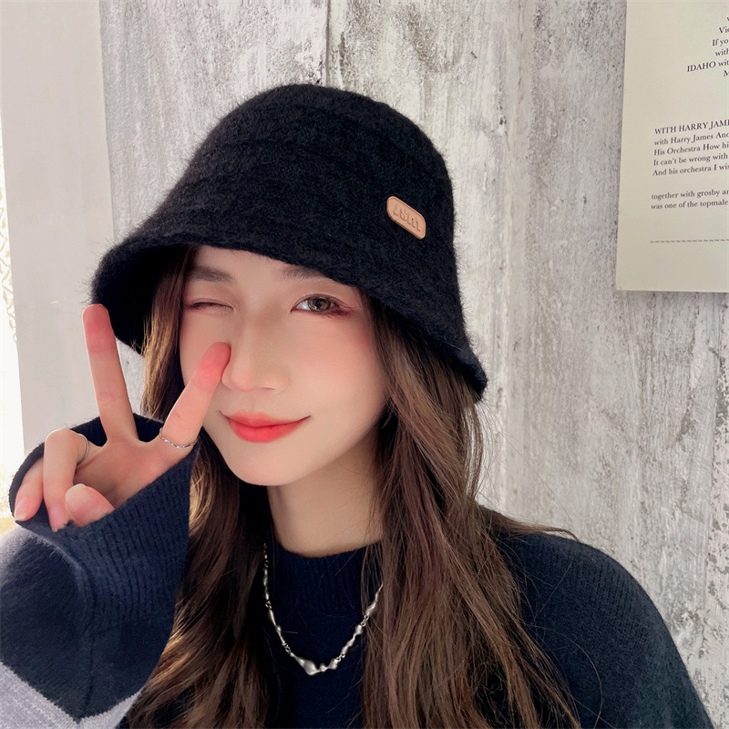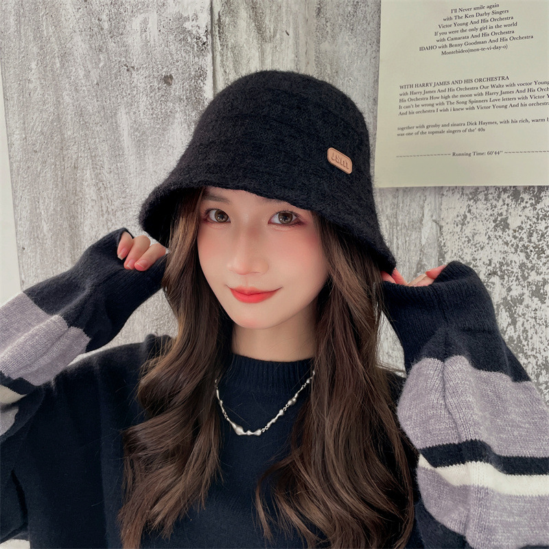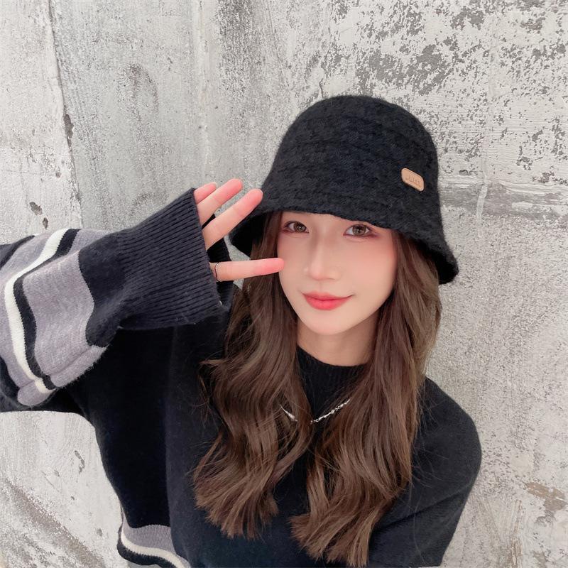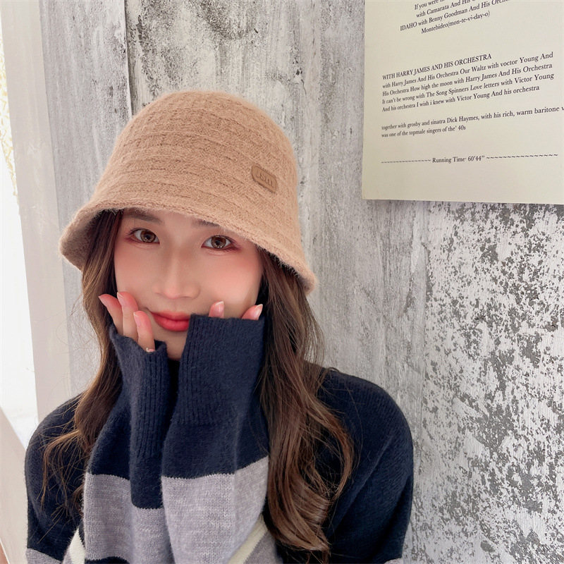 인터넷 연예인 니트 어부 모자 아동용 라벨 올매치 따뜻한 귀 보호 분지 모자 우아한 얼굴 작은 양동이 모자스토어 가기