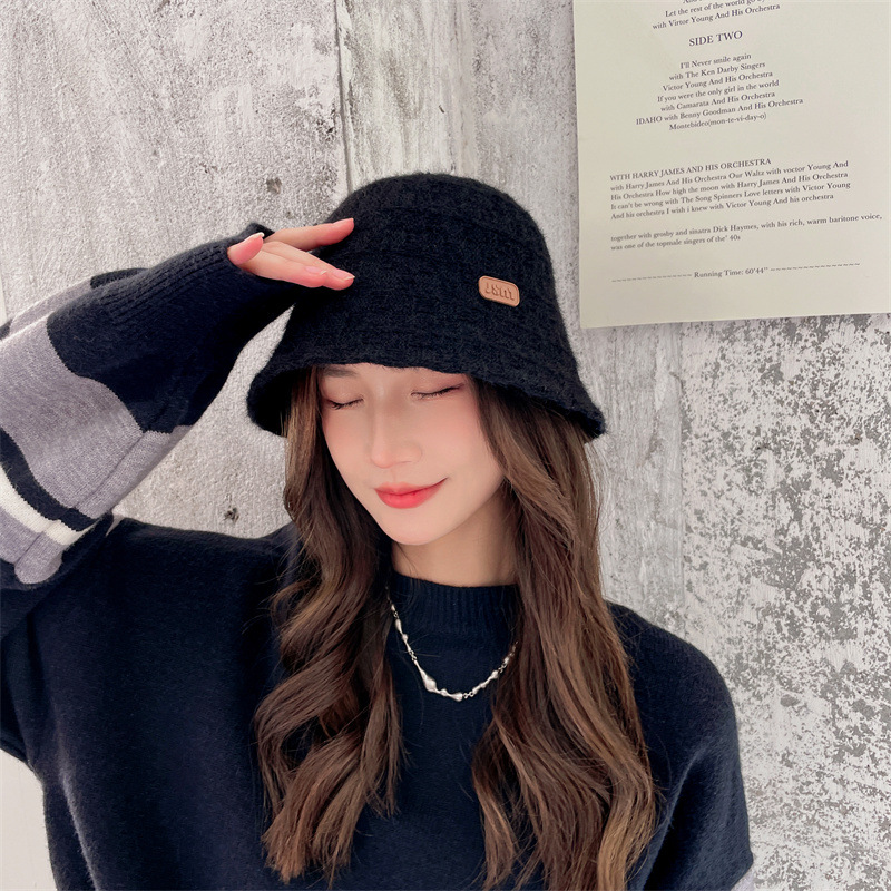 인터넷 연예인 니트 어부 모자 아동용 라벨 올매치 따뜻한 귀 보호 분지 모자 우아한 얼굴 작은 양동이 모자