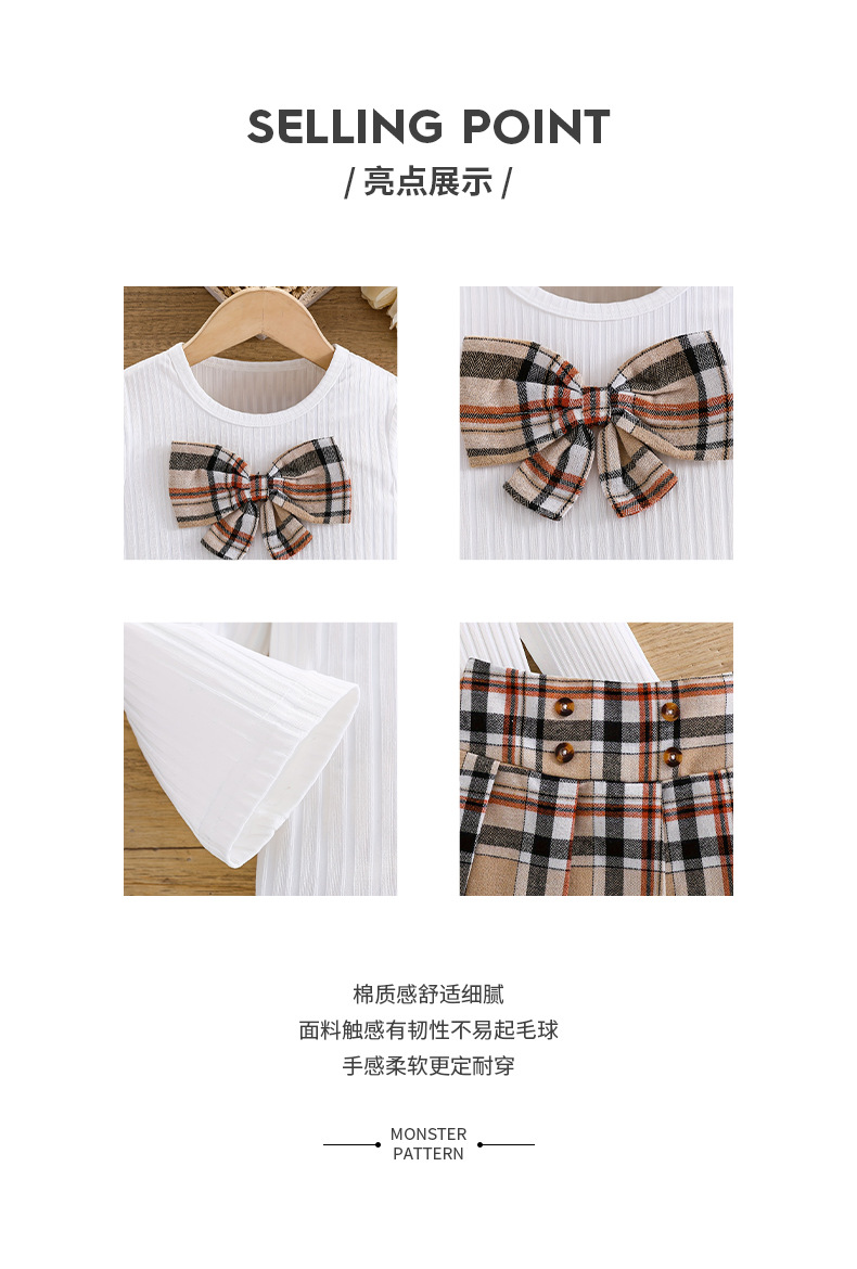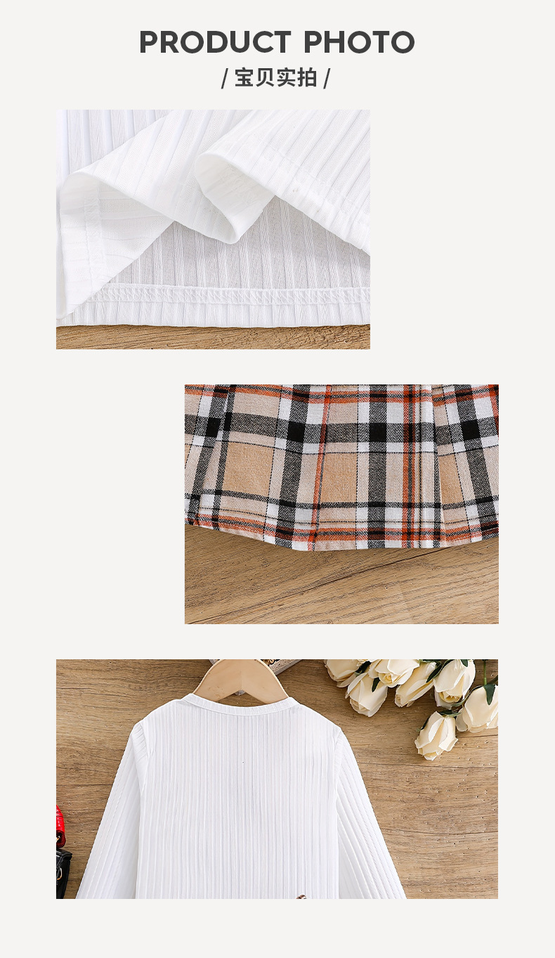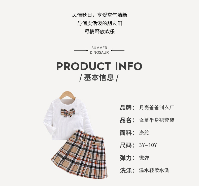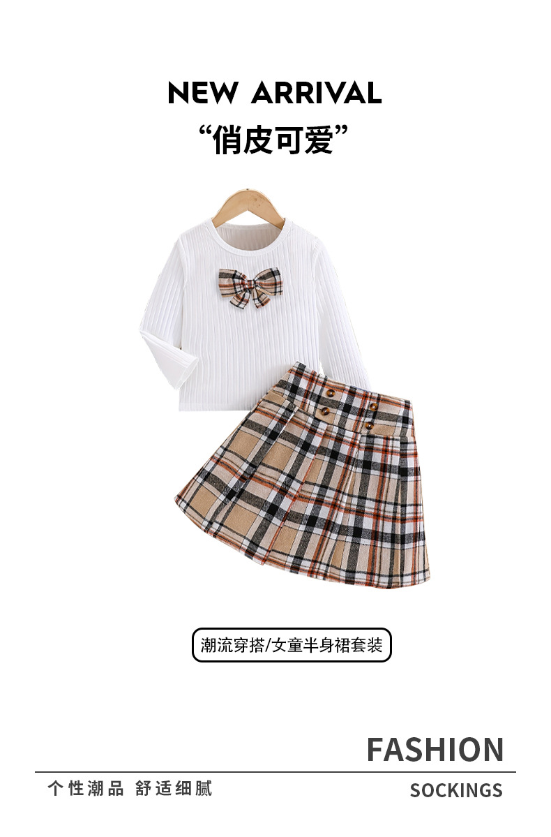 대외 무역 소녀 원피스 흰색 니트 긴팔 반팔 Pleated Paid 치마 어린이 가을 투피스 세트