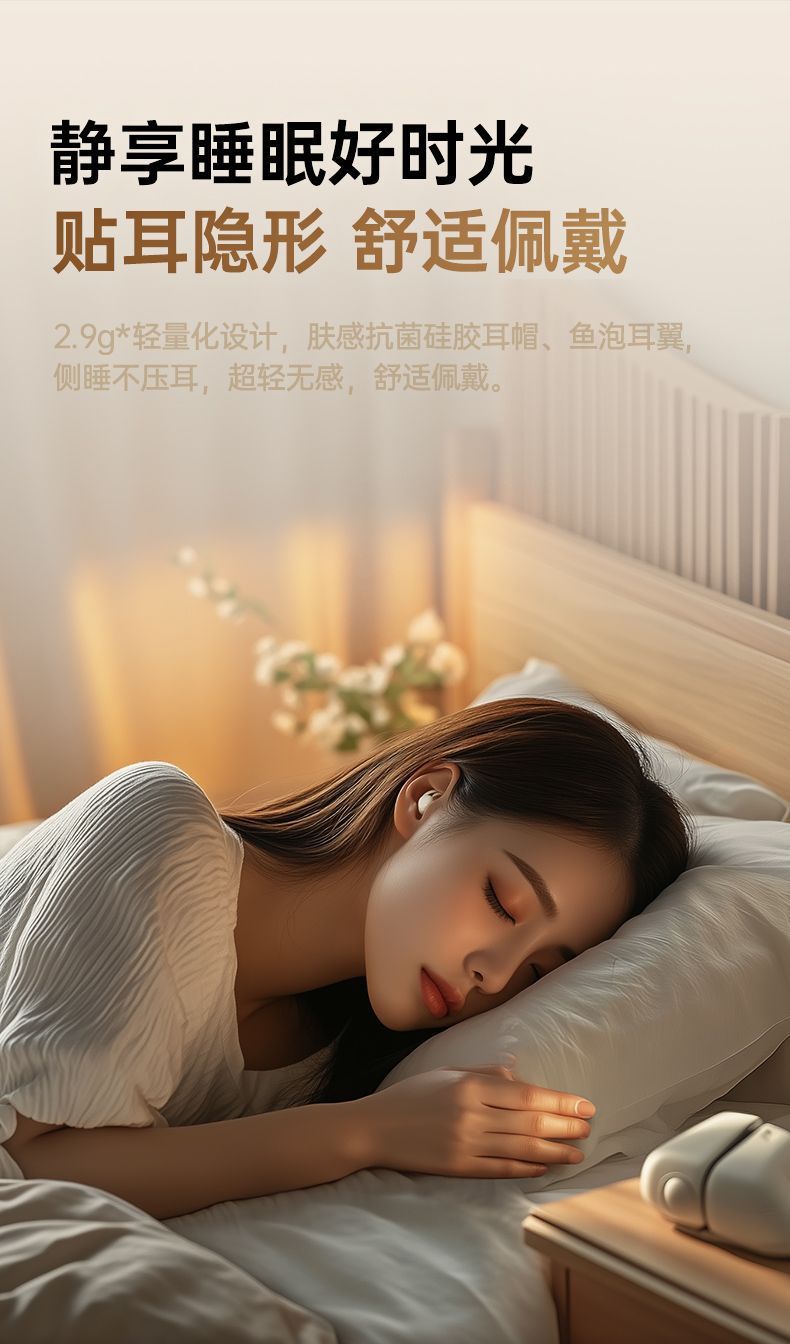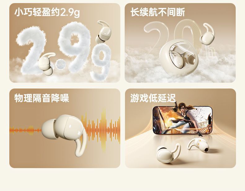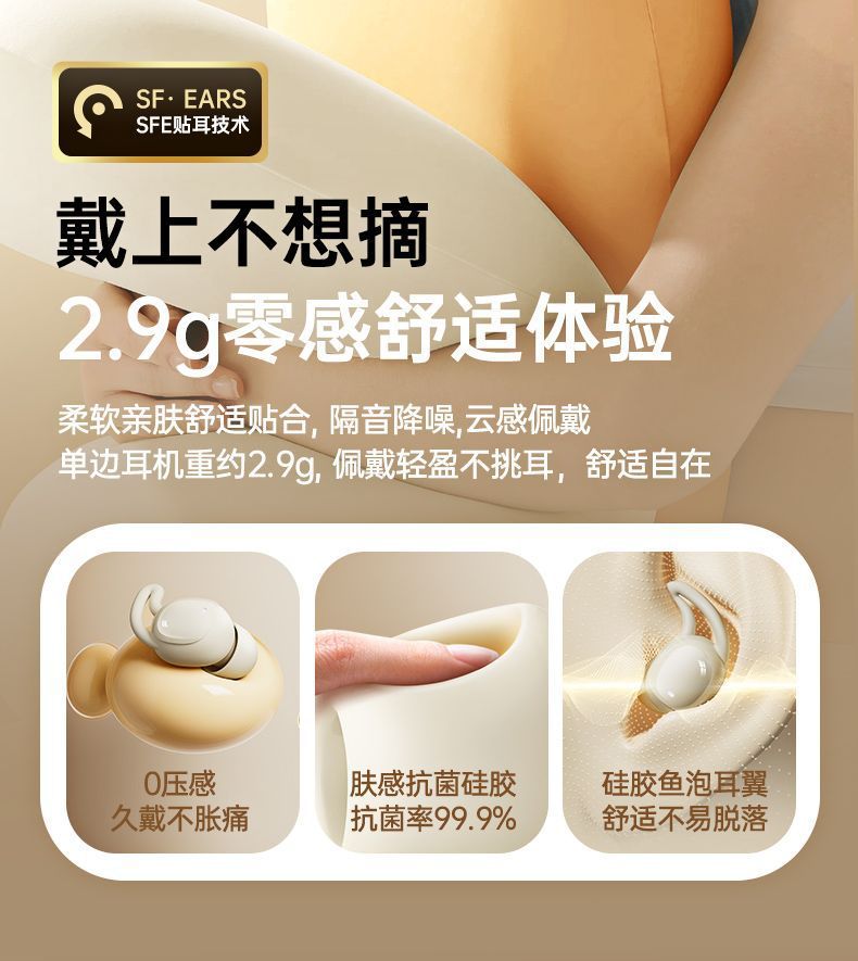 새로운 수면 헤드셋 컴팩트 소프트 플러그 인 이어 무선 블루투스 헤드셋 음악 소음 감소 무선 헤드셋