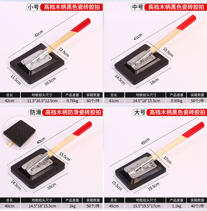 • 8. 고급 나무 손잡이 검정색 타일 고무 샷 대형