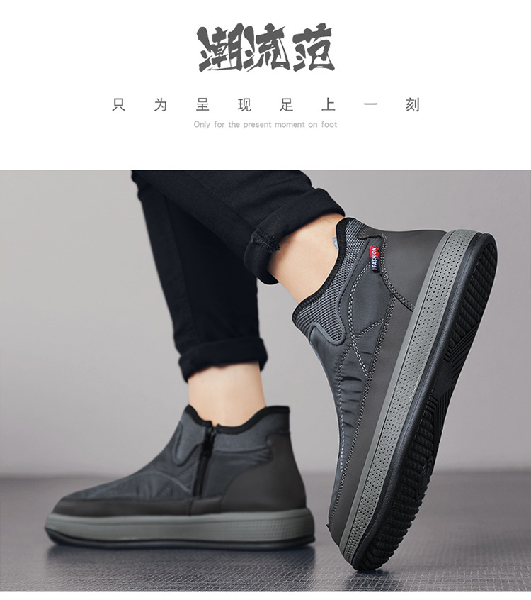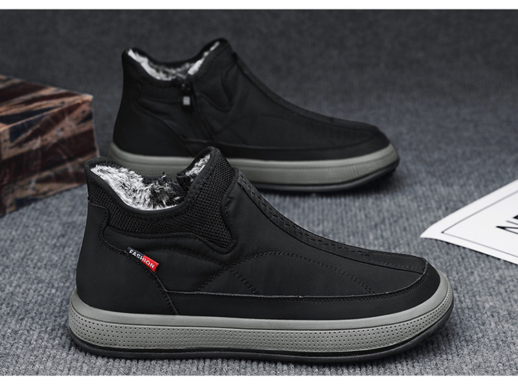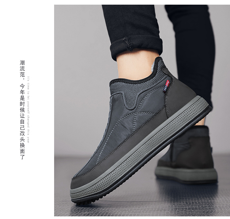 겨울 하이탑 코튼 신발 남성 기모 두꺼운 따뜻한 스노우 부츠 유행 야외 슬립 온 두꺼운 운동화