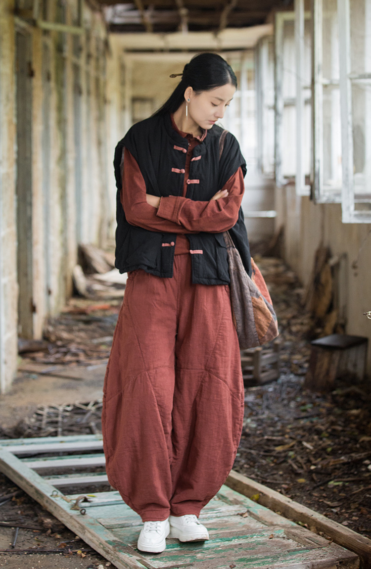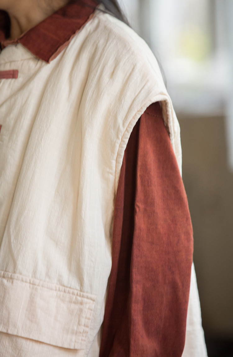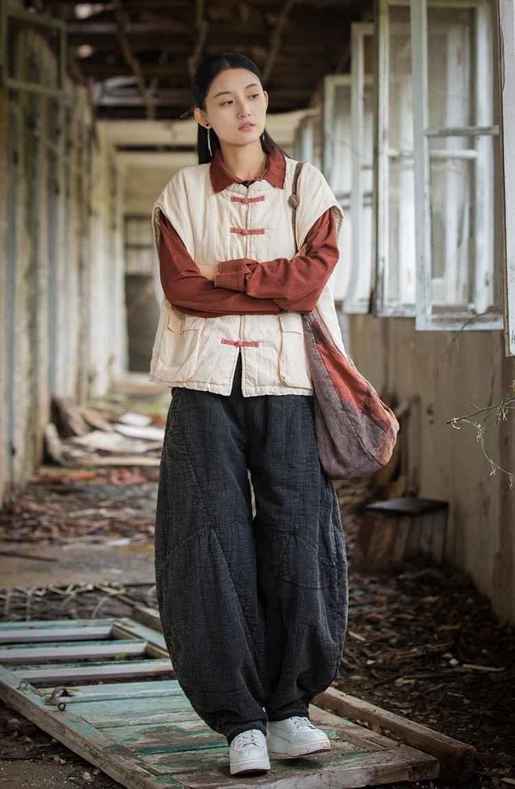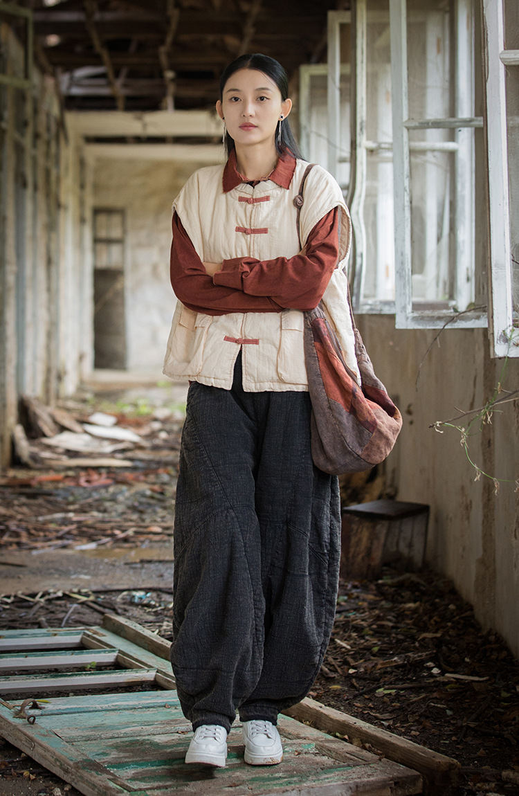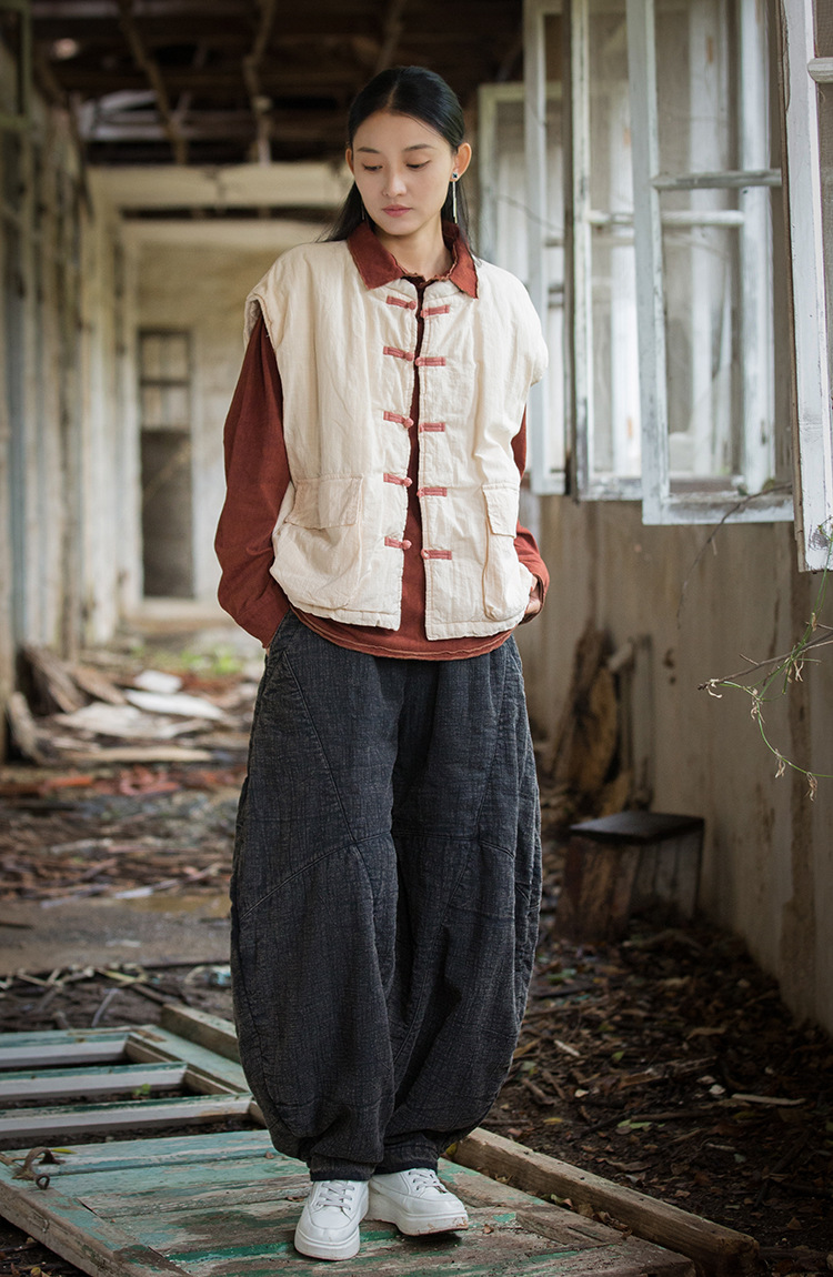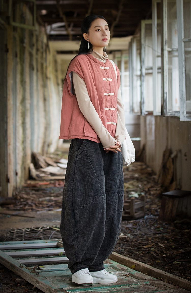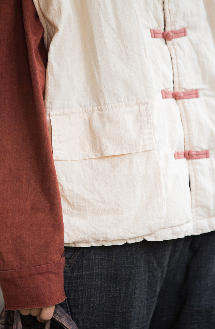 25 겨울 여성복 신상 오리지널 개량형 신중국풍 누빔 면조끼 문예 감성 단추 여성용 면조끼스토어 가기