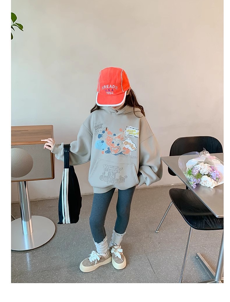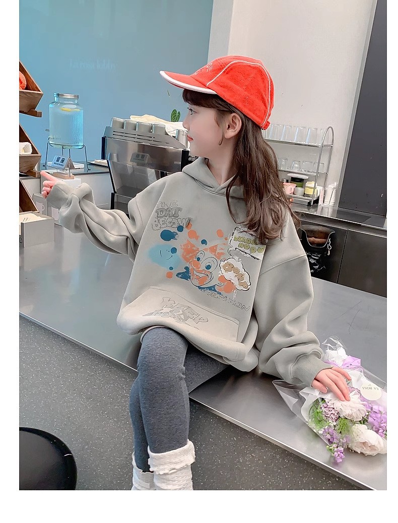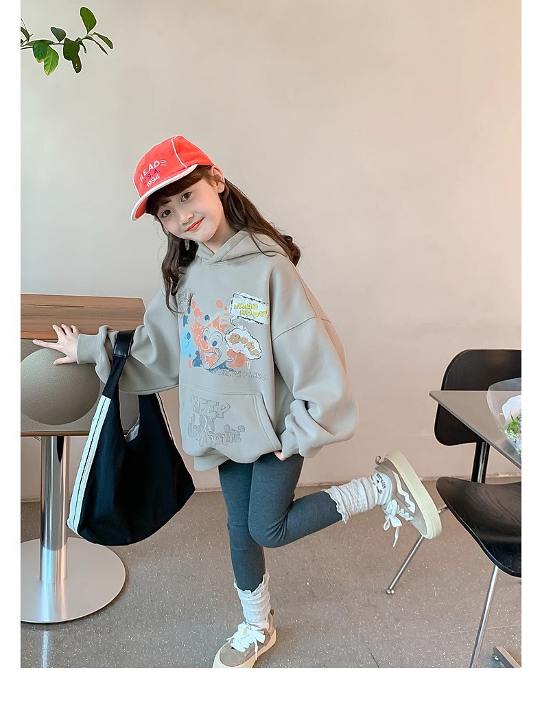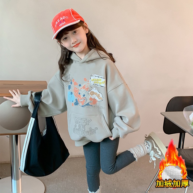 가을과 겨울 어린이 기모 두꺼운 느슨한 캐주얼 세트 소녀의 만화 후드 스웨트 레깅스 투피스 세트스토어 가기
