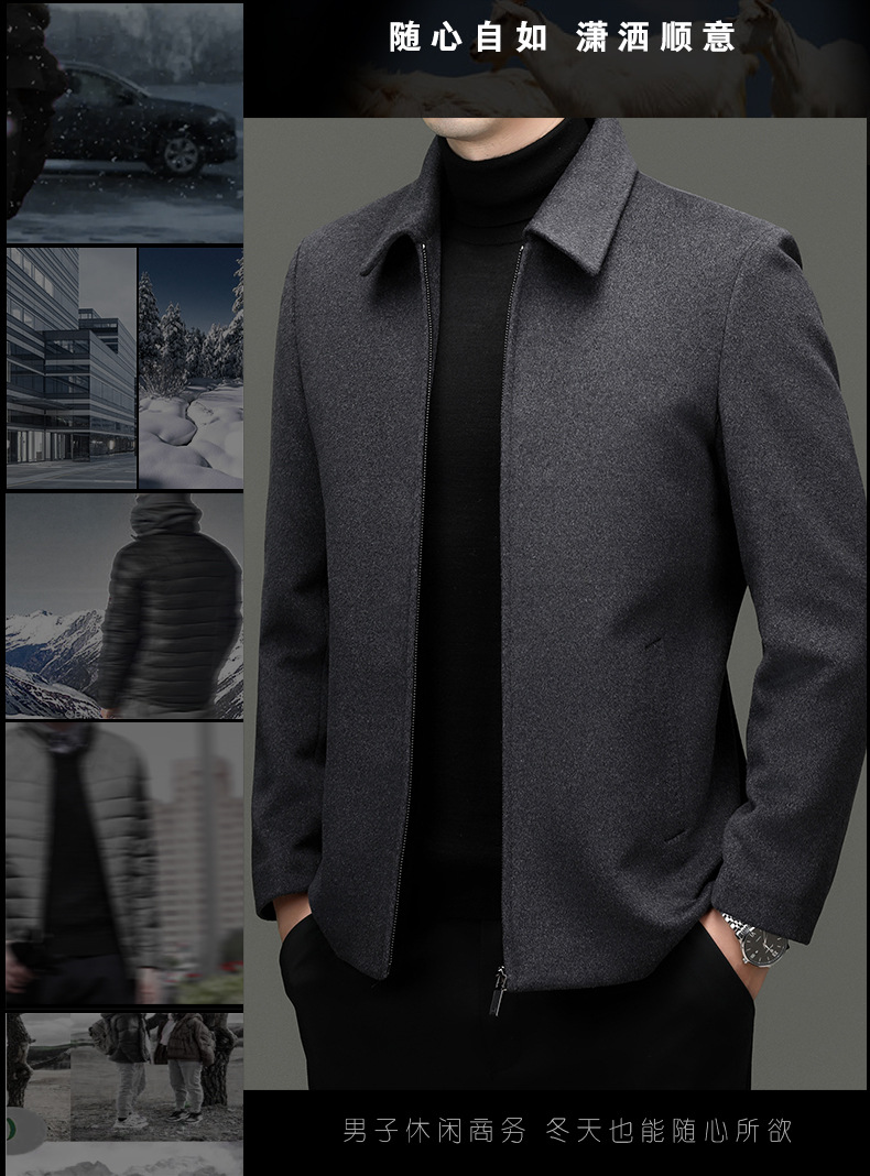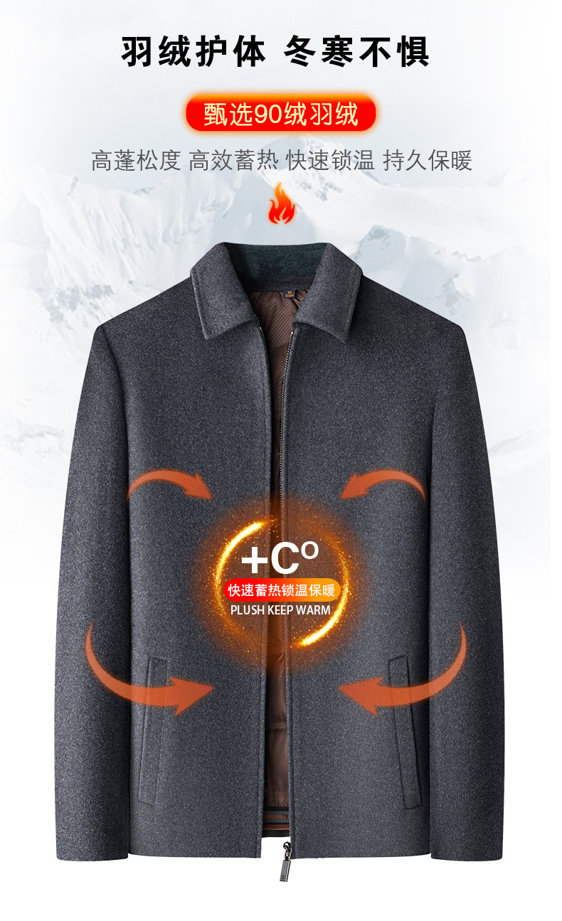 브랜드 남성 2024 새로운 중년 아빠 비즈니스 캐주얼 패션 코트 양모 두꺼운 따뜻한 재킷 겨울 착용