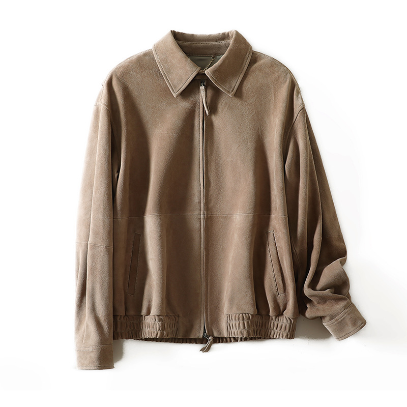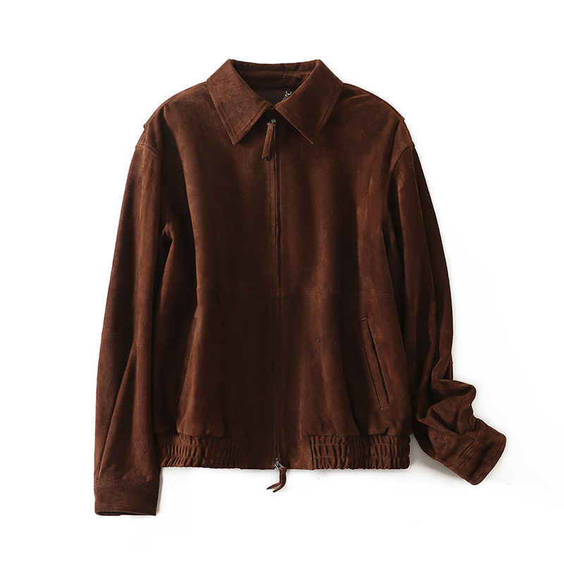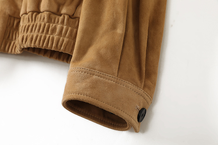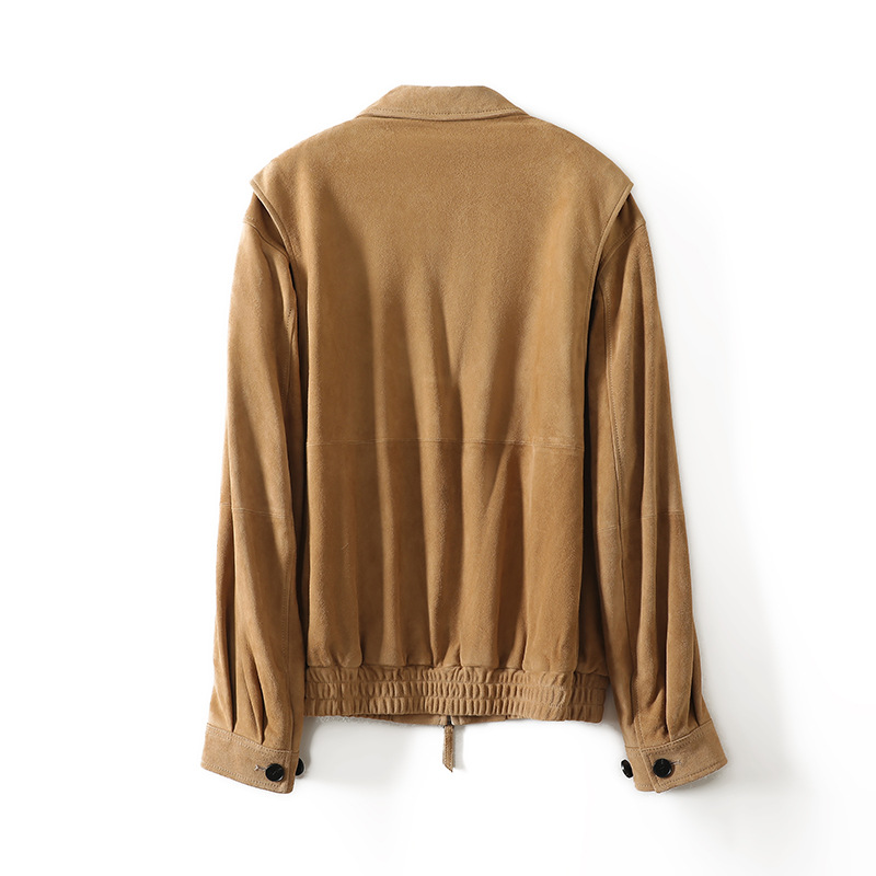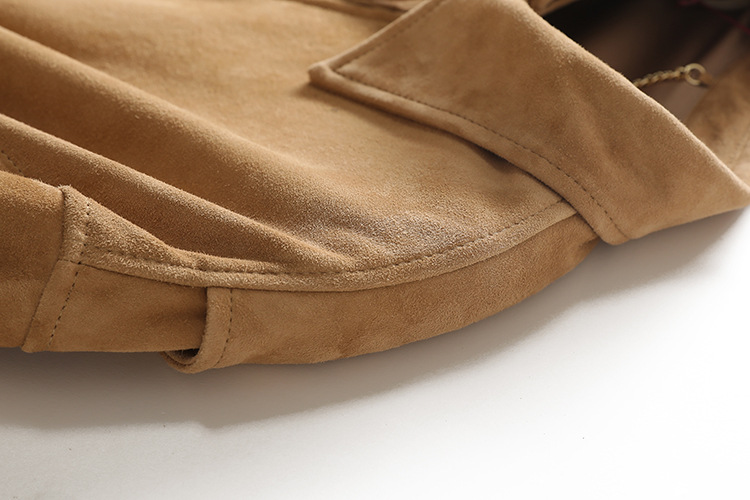 초가을 신제품 HN4170 수입 정품 양가죽 스웨이드 복고풍 올드 머니 와이드 숄더 라펠 재킷 여성 캐주얼 가죽 코트
