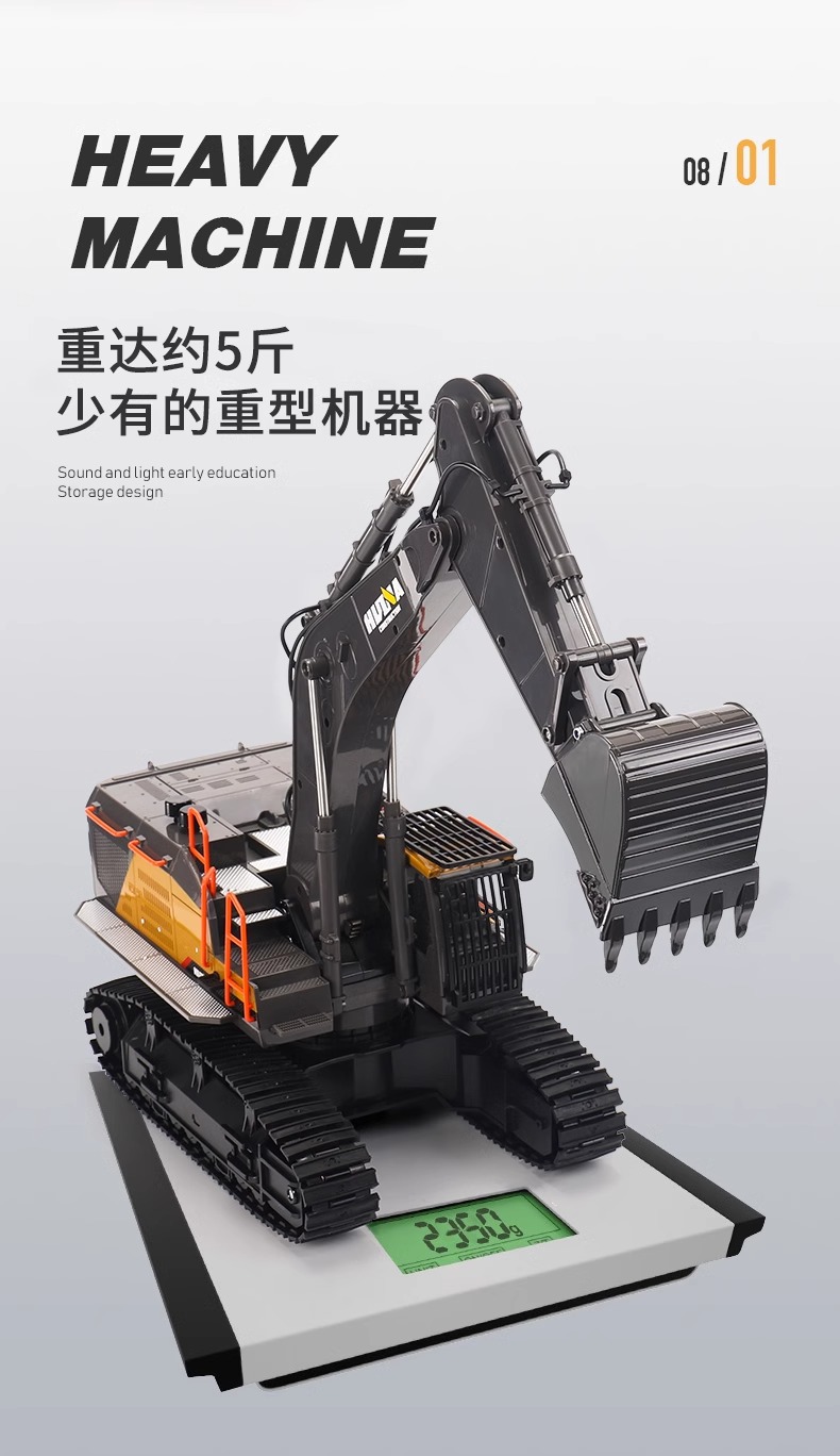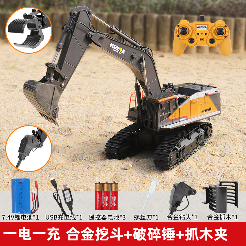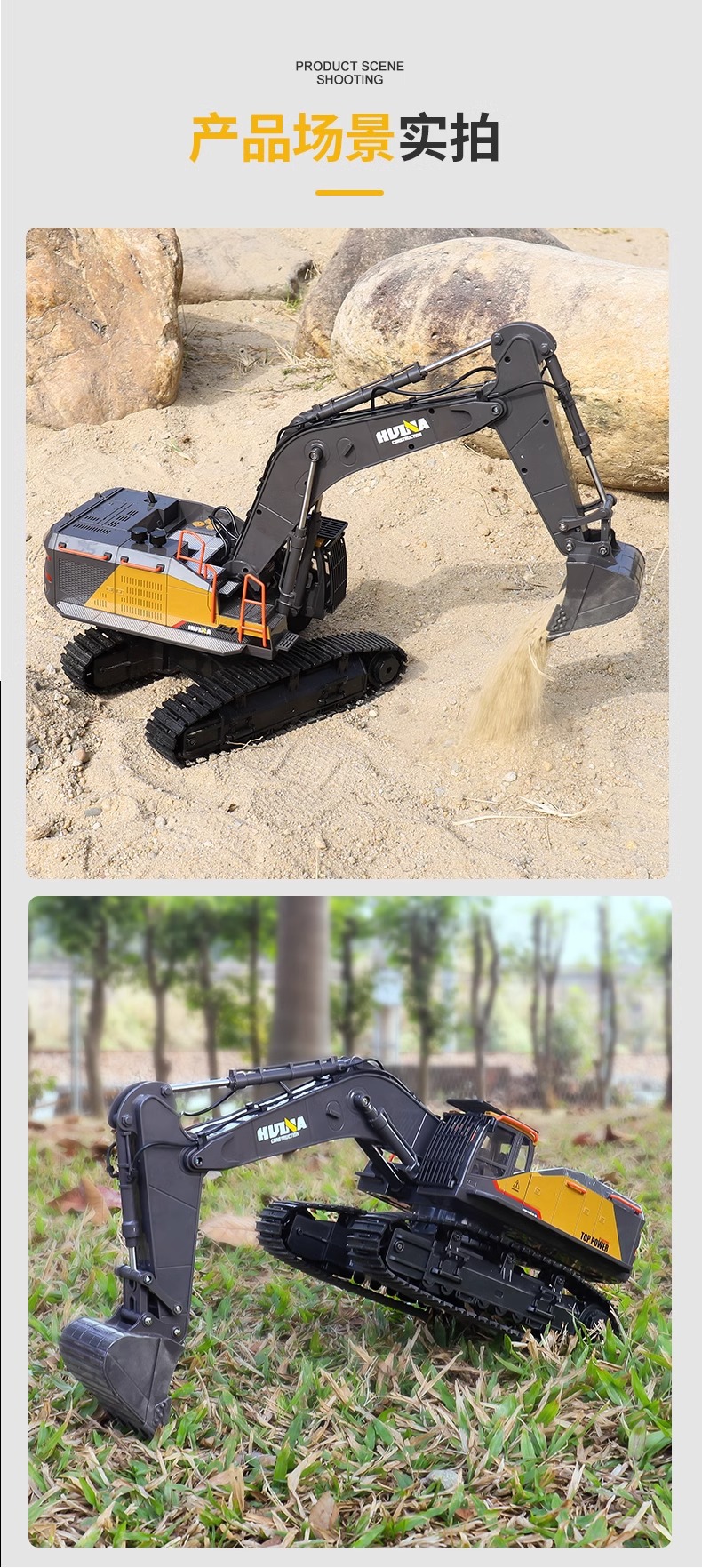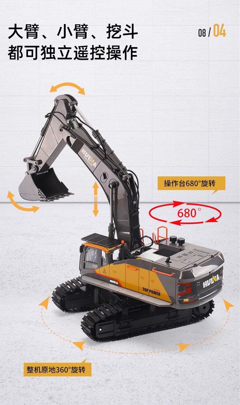 【세금 포함】후이나 592 대형 원격 조종 굴착기 알루미늄 합금 시뮬레이션 유압 공학 차량 전기 모델 차량