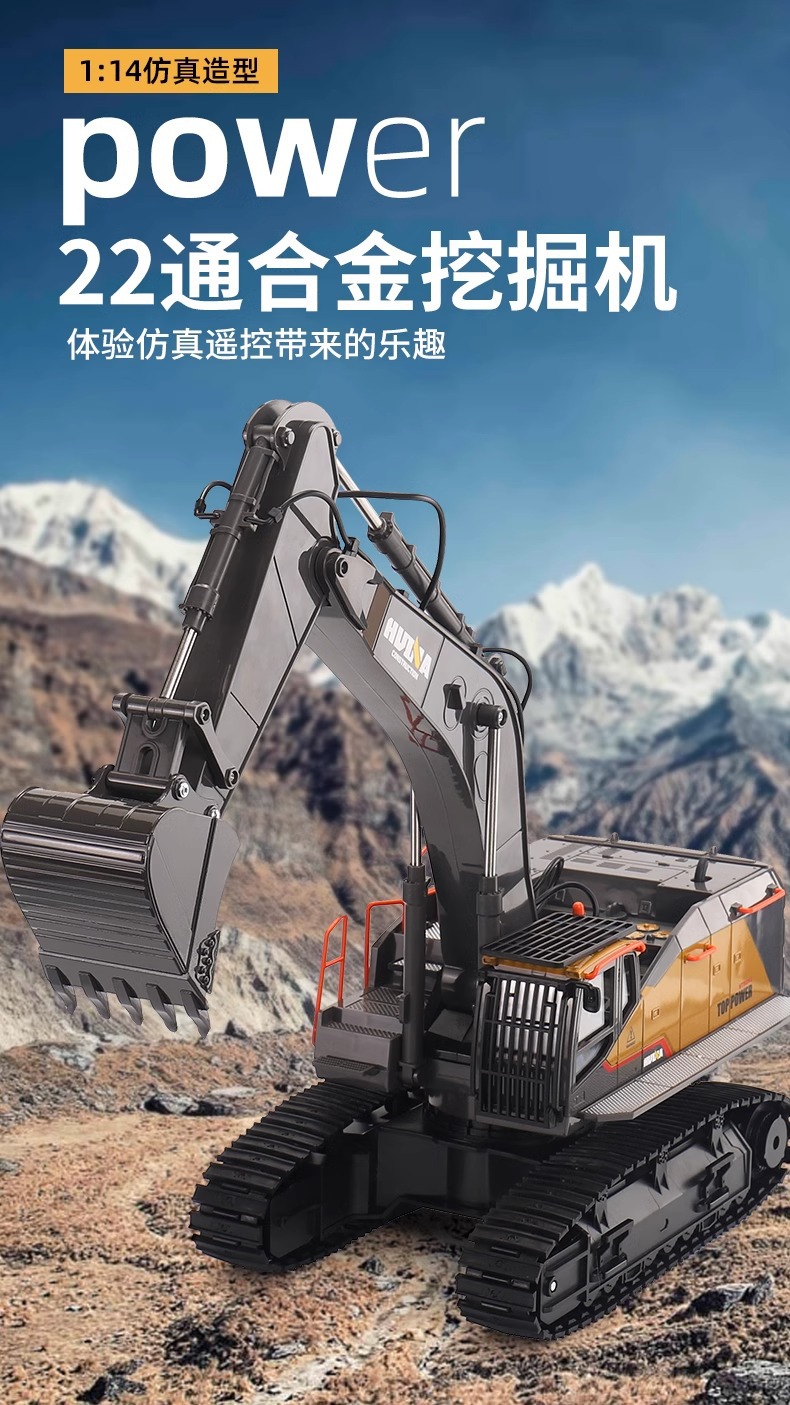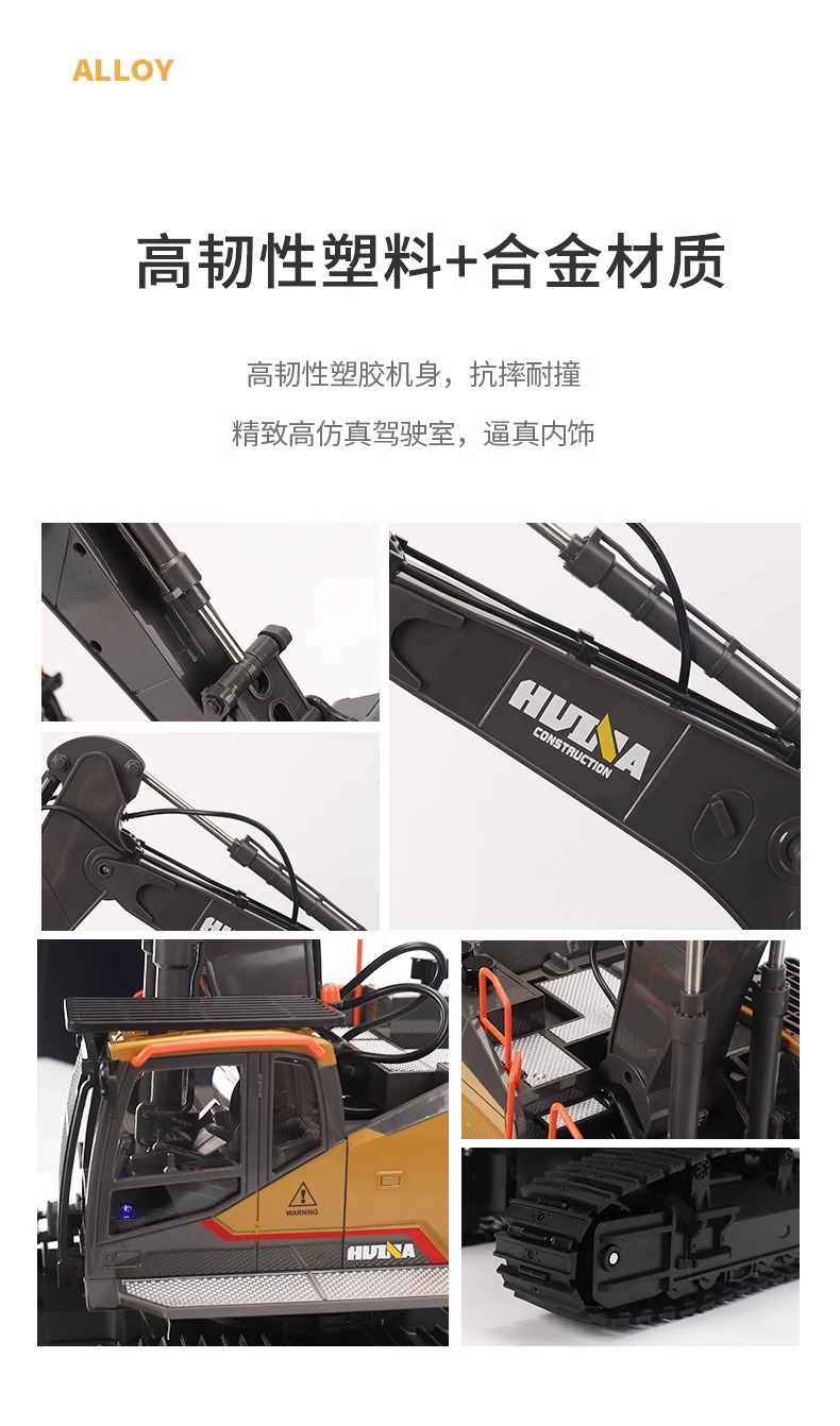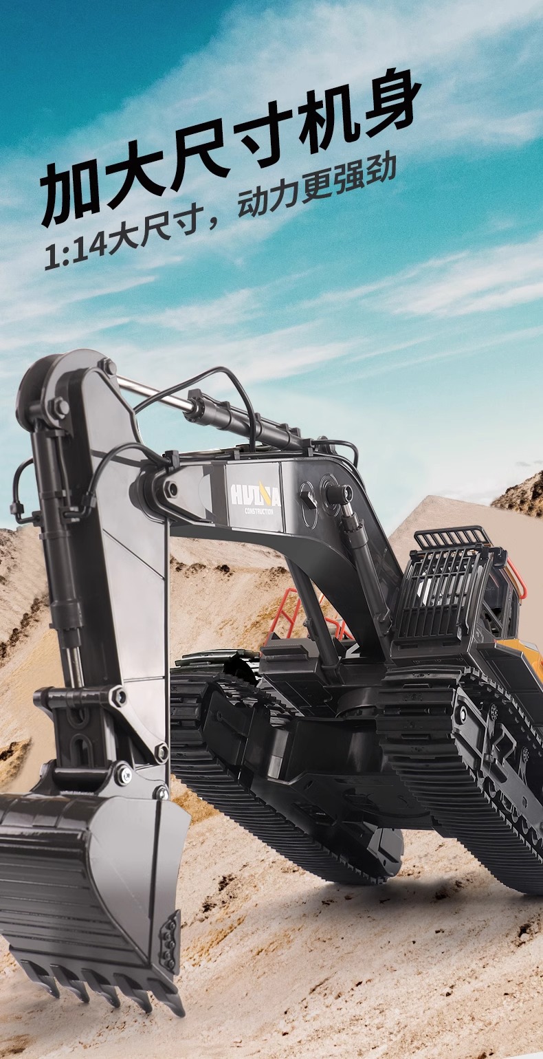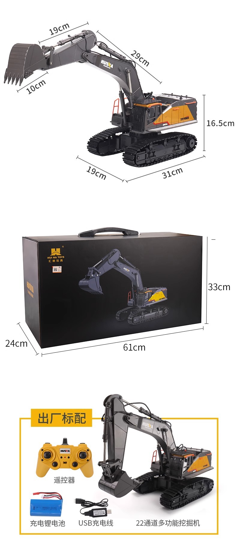 【세금 포함】후이나 592 대형 원격 조종 굴착기 알루미늄 합금 시뮬레이션 유압 공학 차량 전기 모델 차량