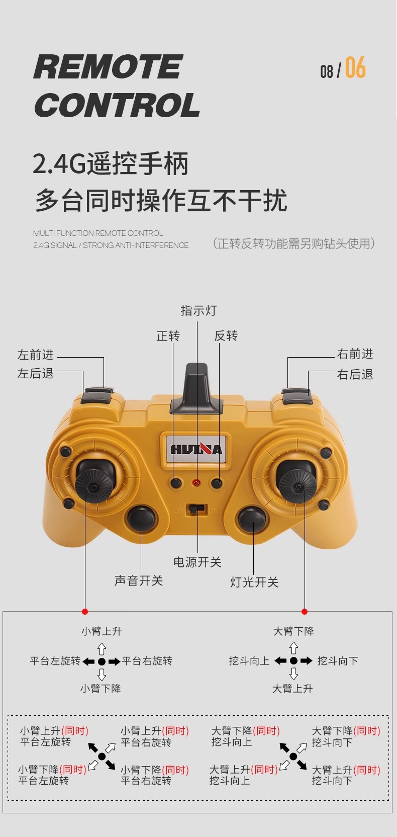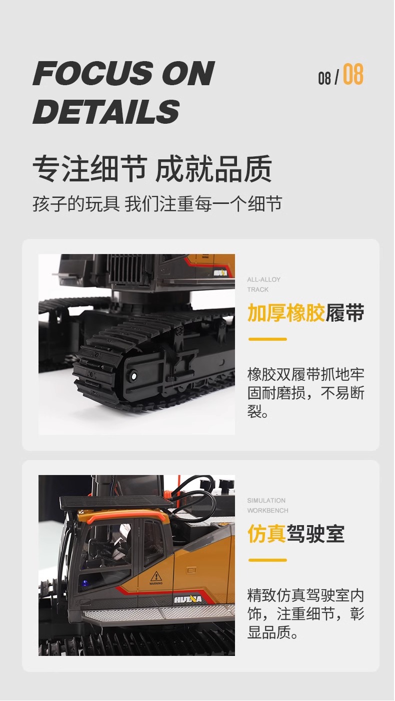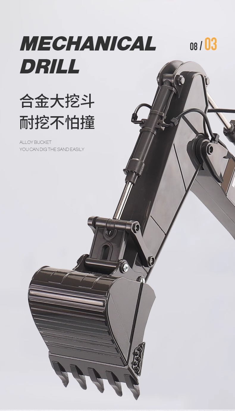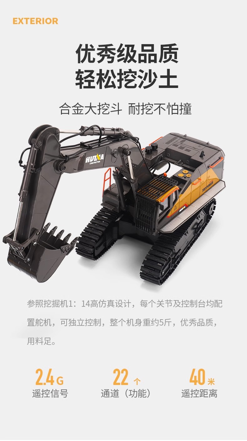 【세금 포함】후이나 592 대형 원격 조종 굴착기 알루미늄 합금 시뮬레이션 유압 공학 차량 전기 모델 차량