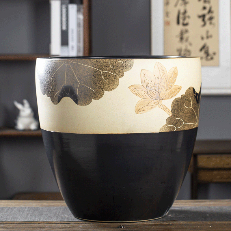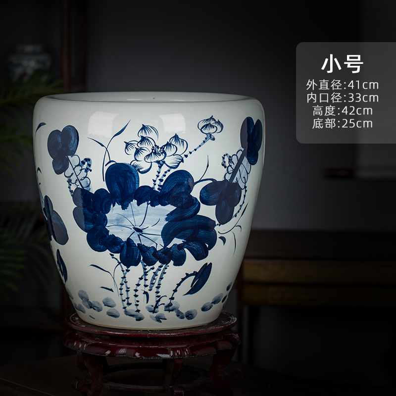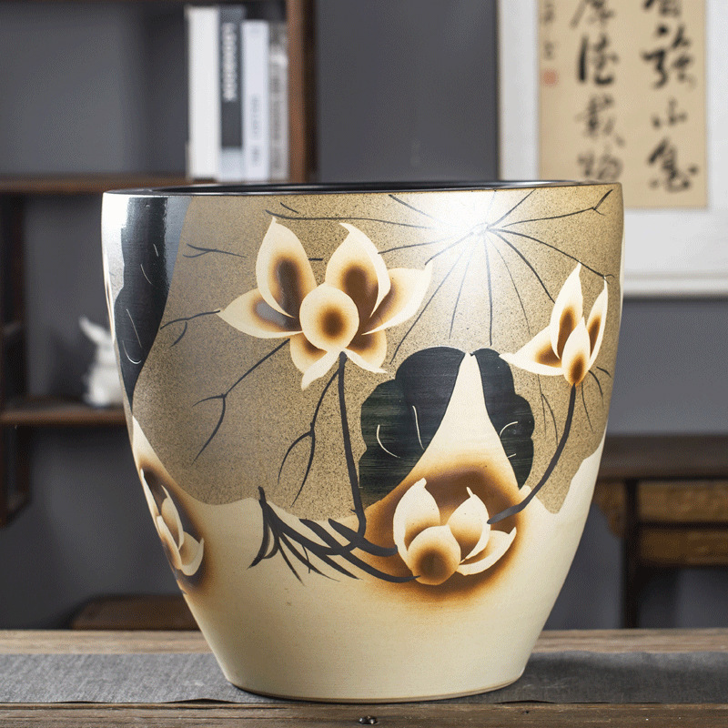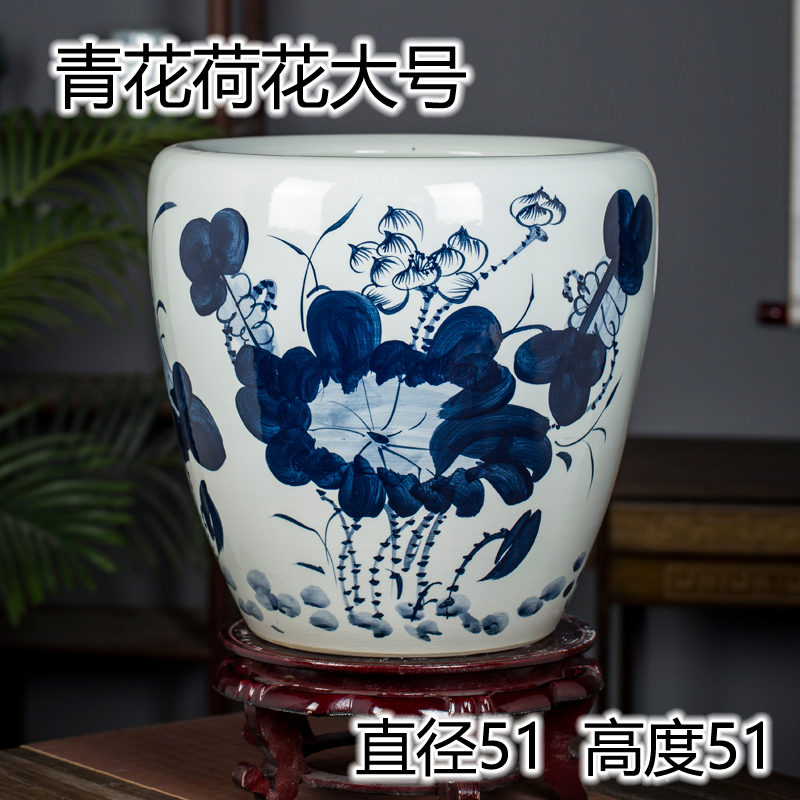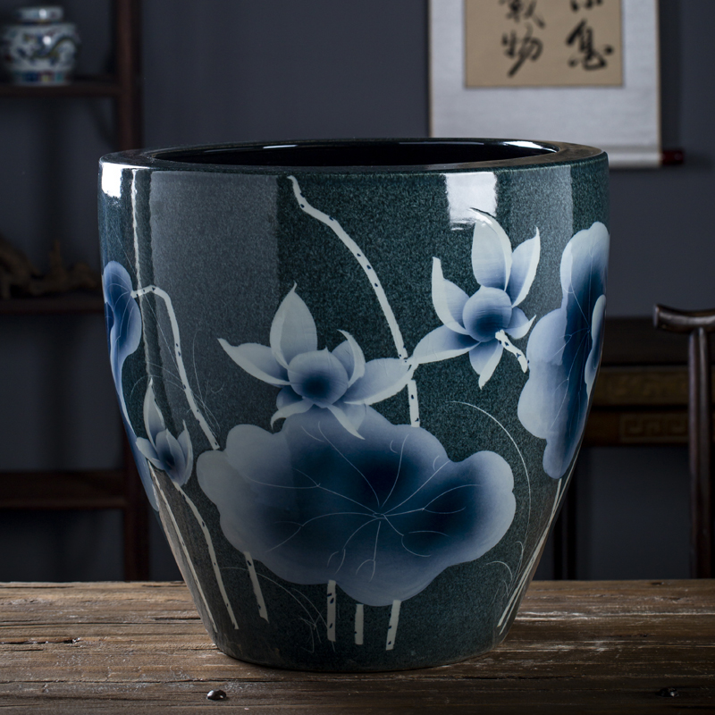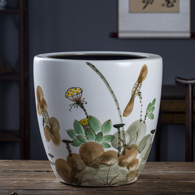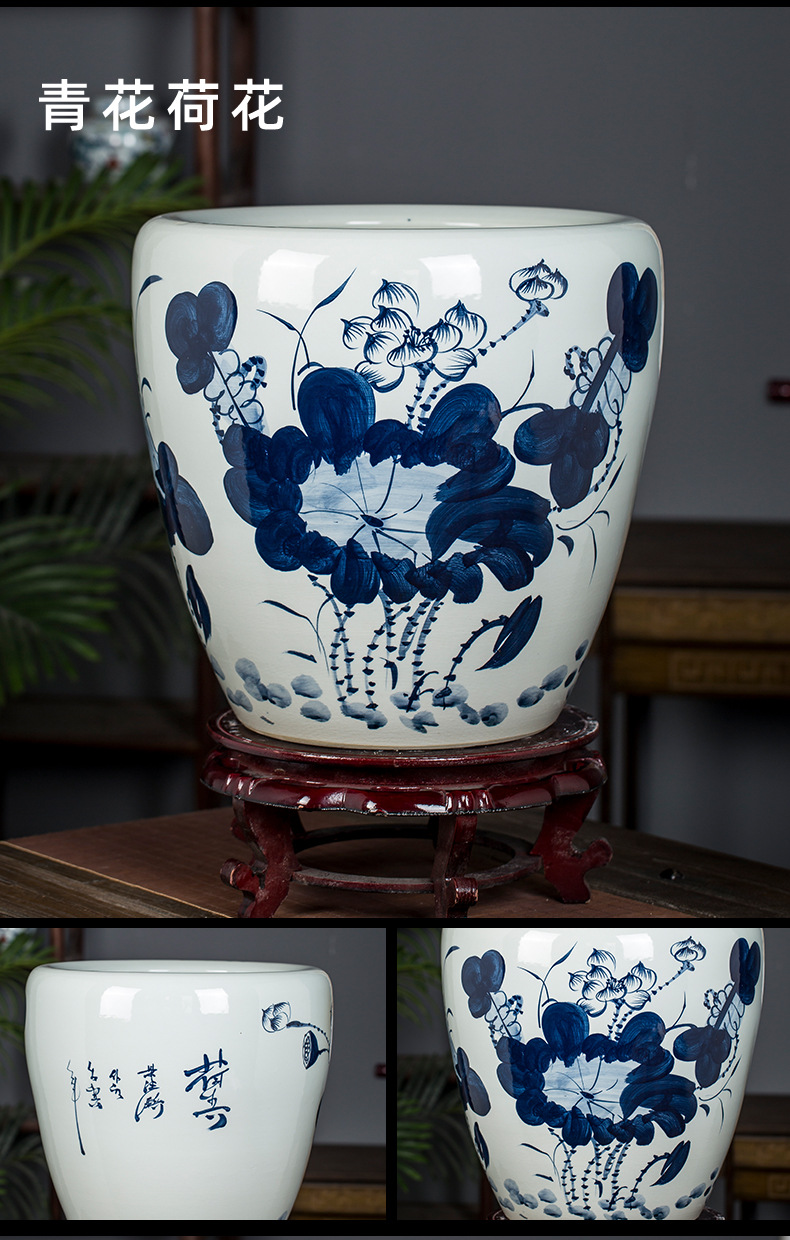Jingdezhen 세라믹 어항 물 탱크 금붕어 연꽃 그릇 백합 유역 높이 호텔 안뜰 거실 그림 및 서예 탱크