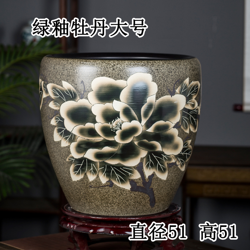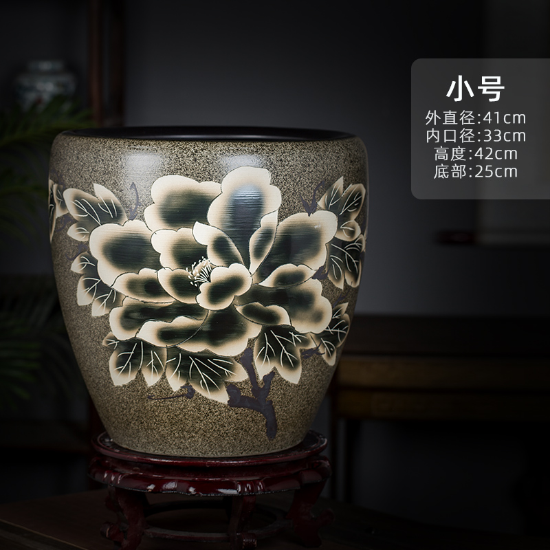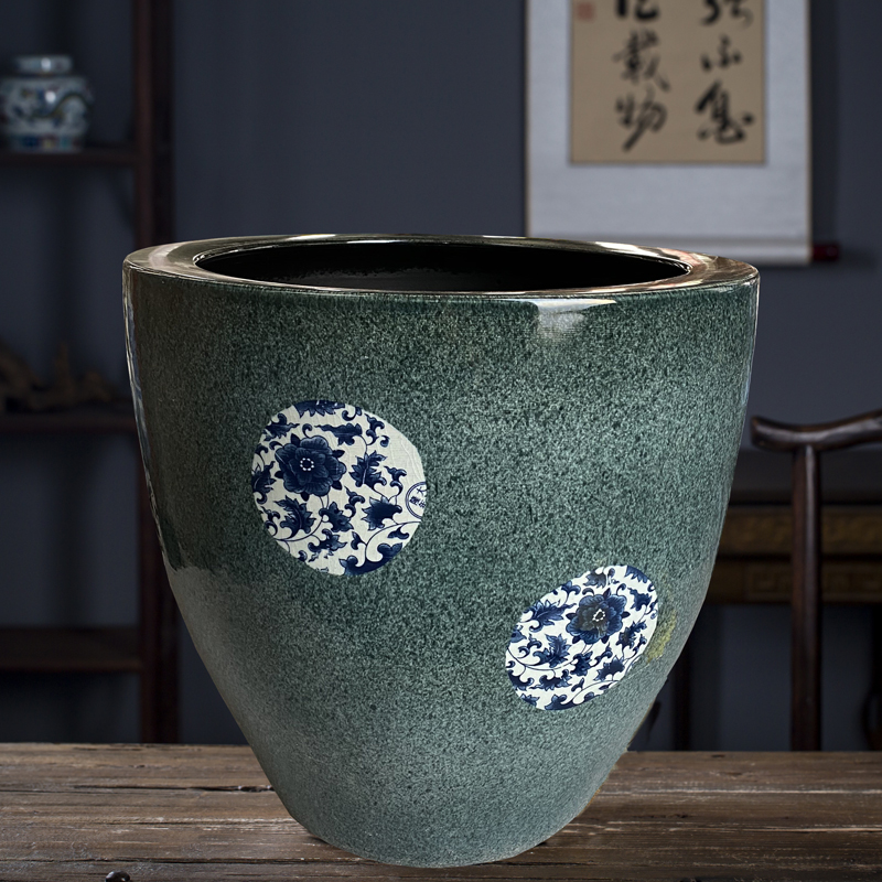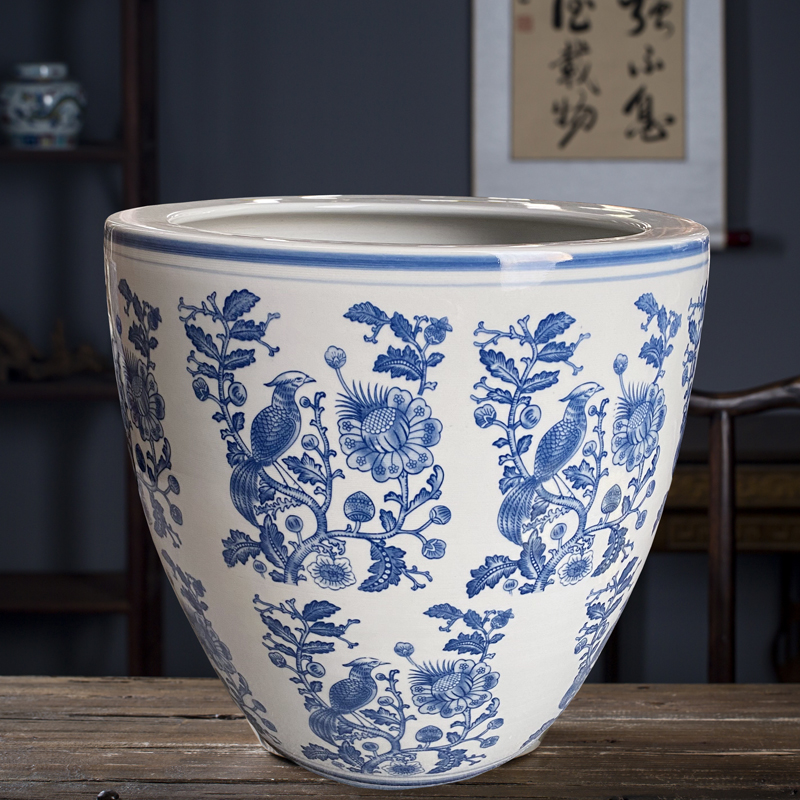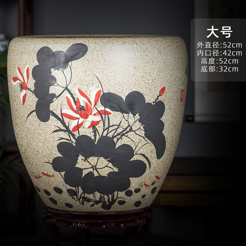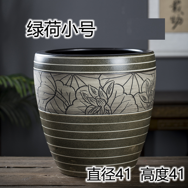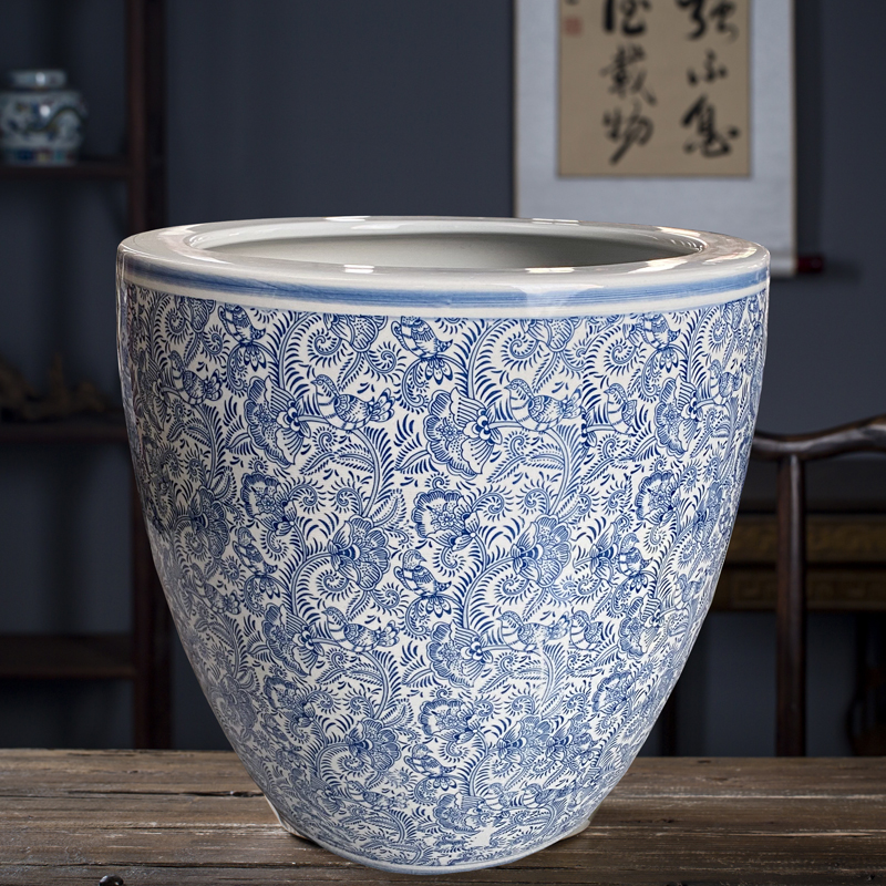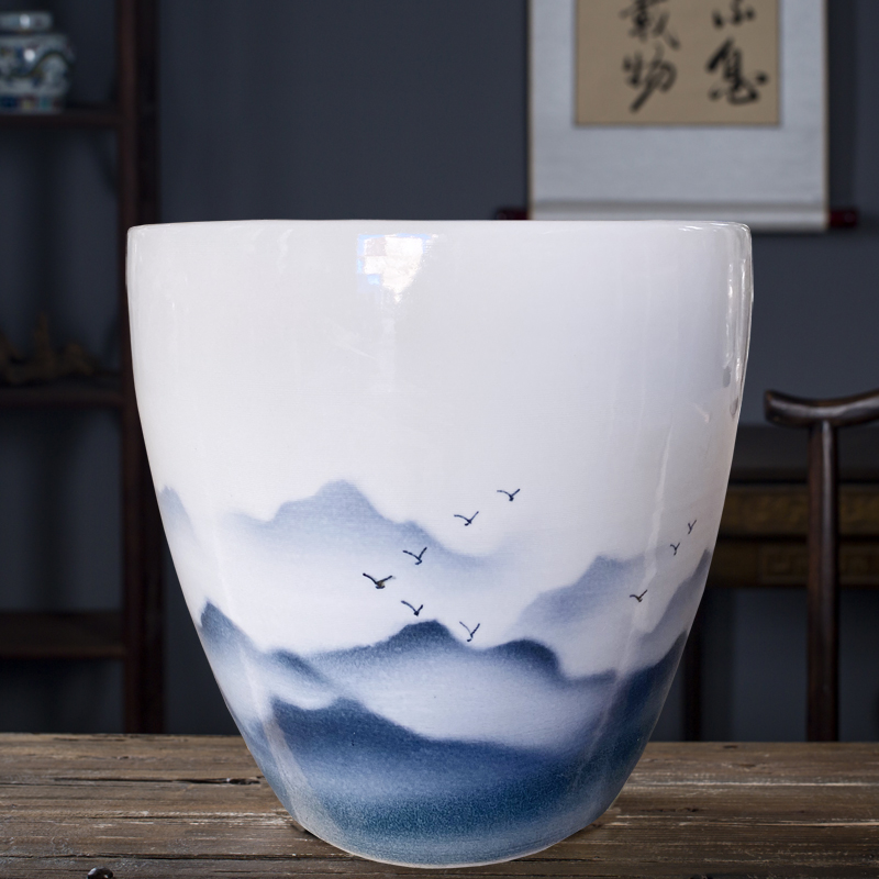 Jingdezhen 세라믹 어항 물 탱크 금붕어 연꽃 그릇 백합 유역 높이 호텔 안뜰 거실 그림 및 서예 탱크